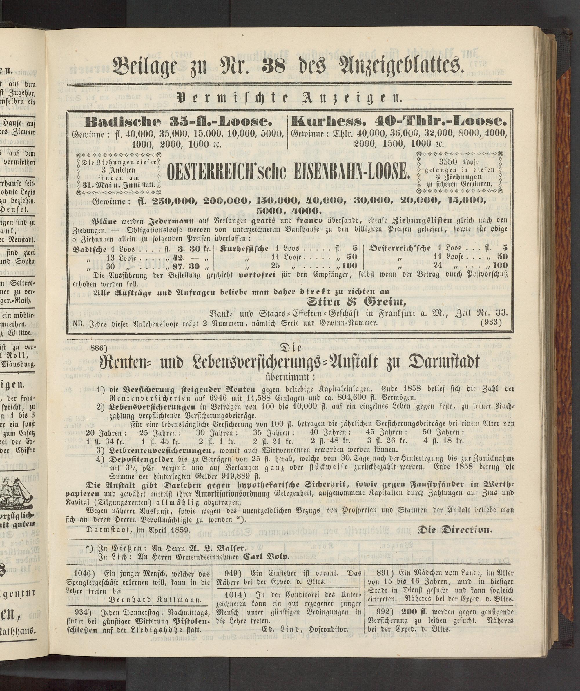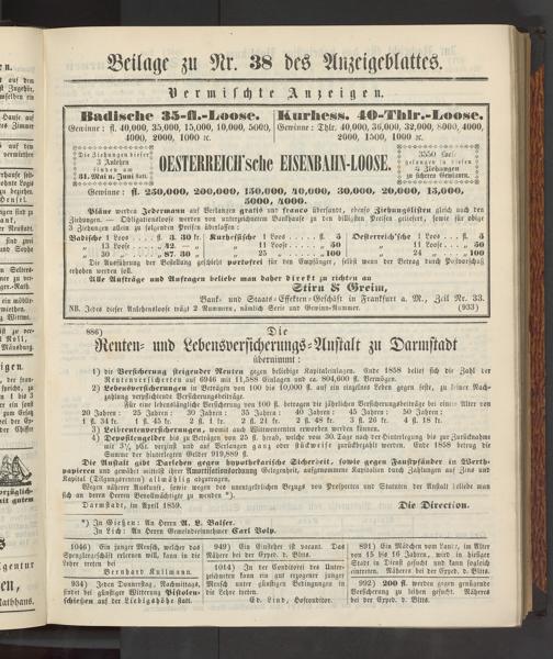 Wegen näherer Auskunft, sowie wegen des unentgeldlichen Bezugs von Prospekten und Statuten der Anstalt beliebe man sich an deren Herren Bevollmächtigte zu wenden *).