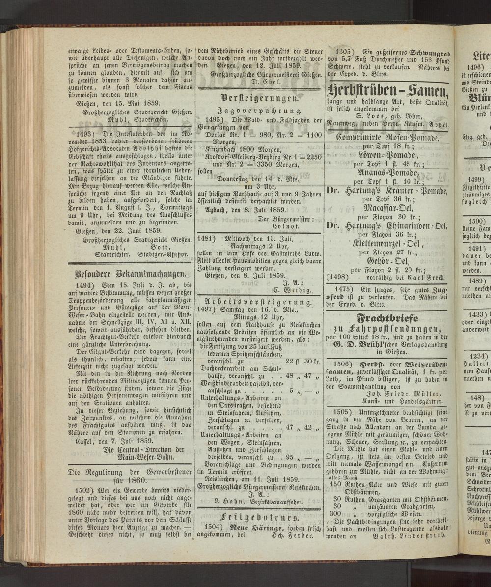 Reiskirchen, am 11. Juli 1859. Großherzogliche Bürgermeisterei Reiskirchen.