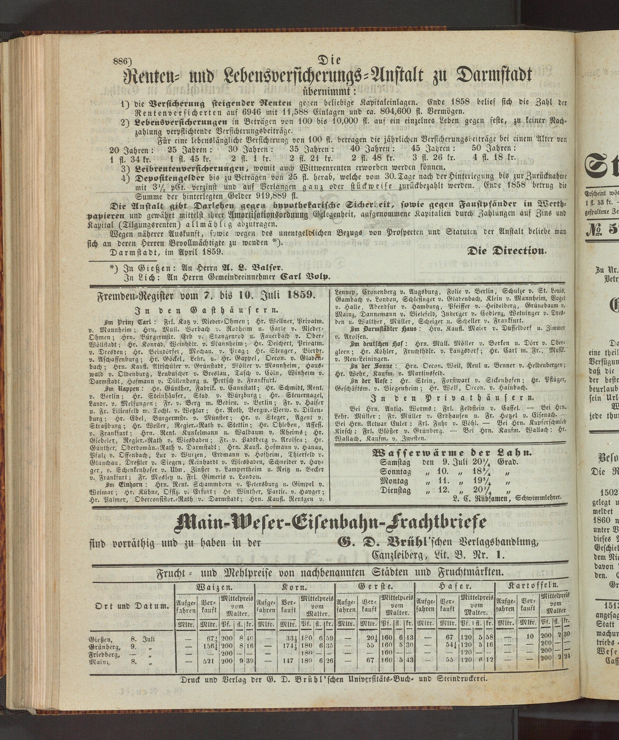 Fremden-Register vom 7. bis 10. Juli 1859.