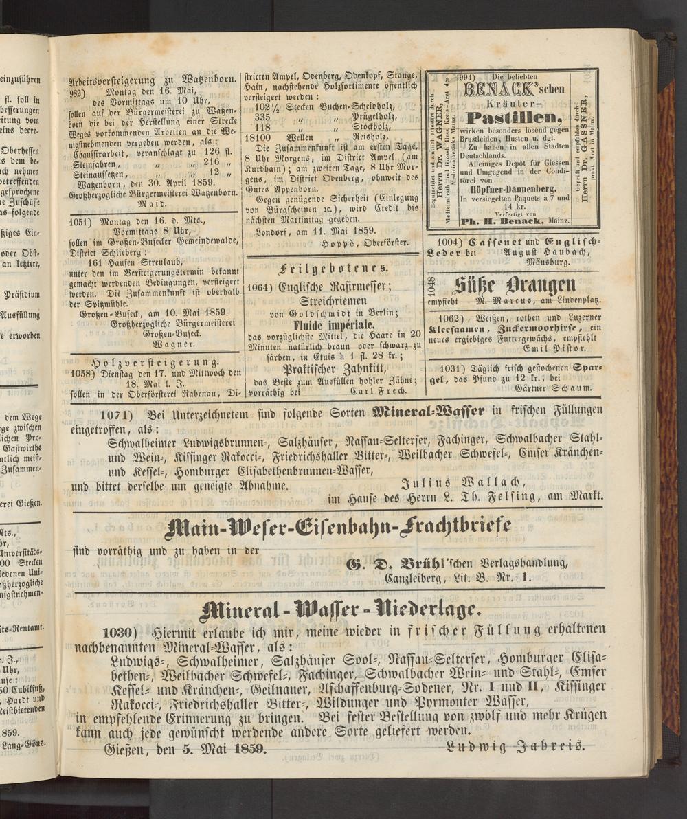 Gießen, den 5. Mai 1859. Ludwig Ja b reis.
