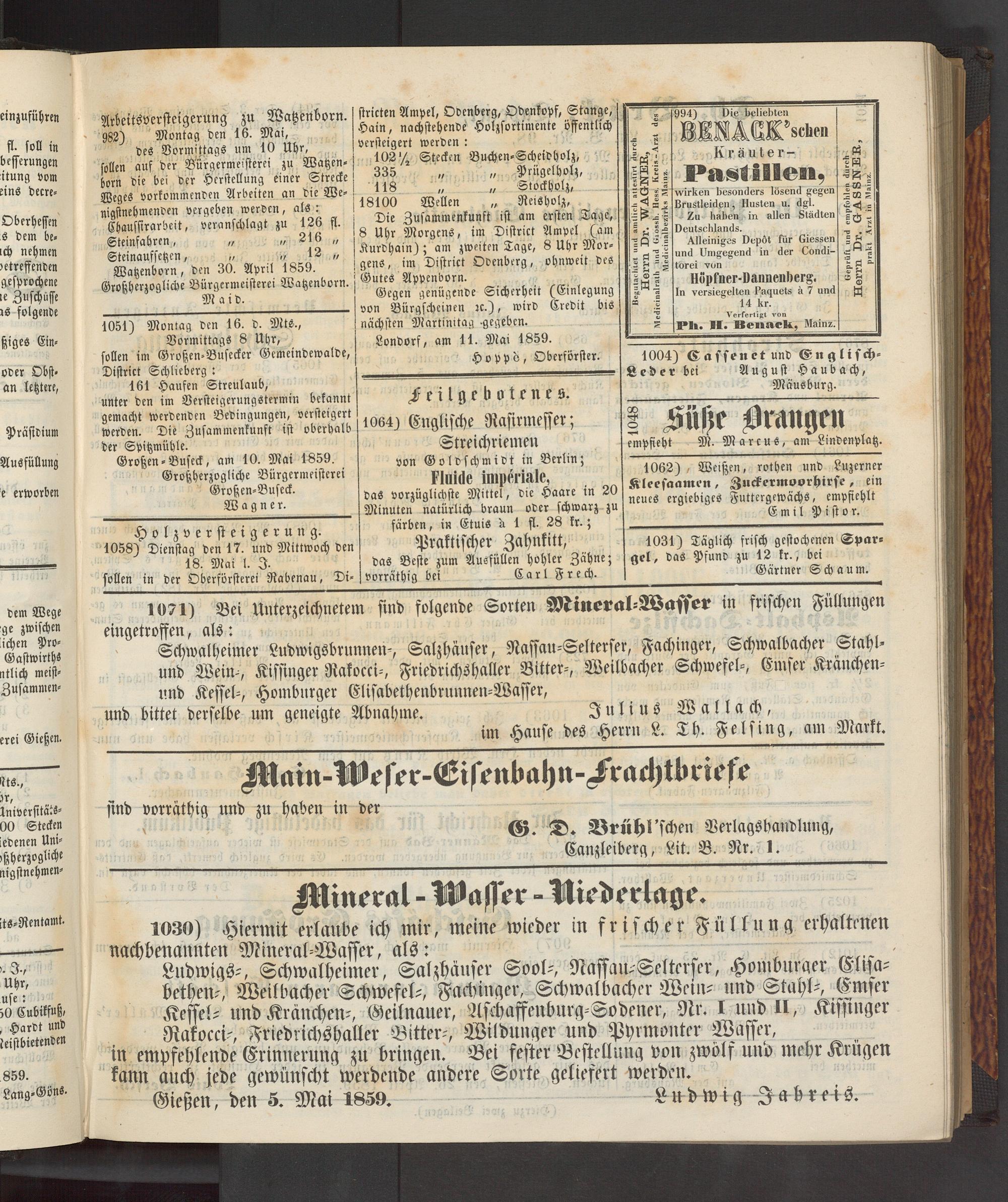 Großen-Buseck, am 10. Mai 1859.