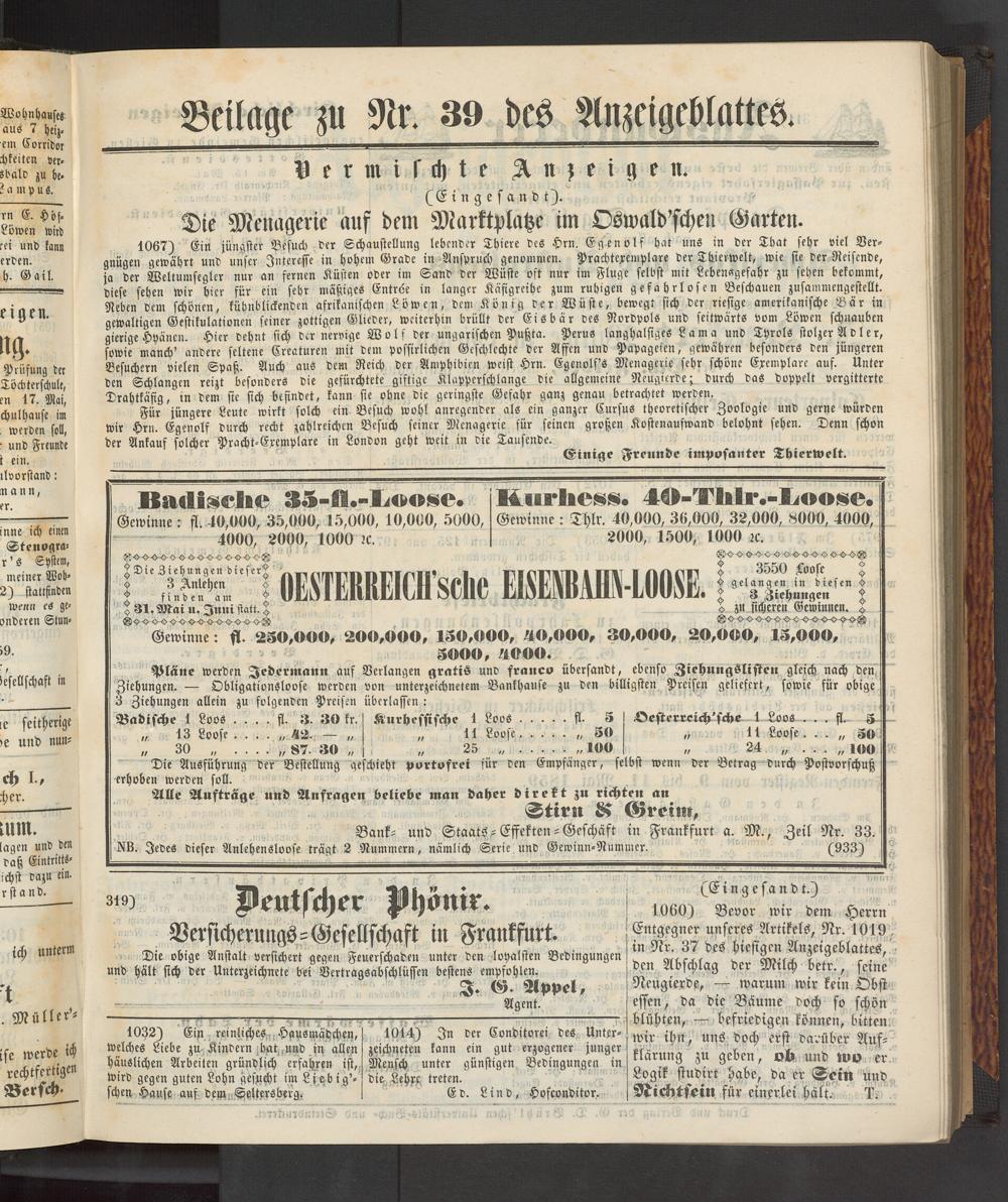 Beilage zu Nr. 39 des Anzeigeblattes.