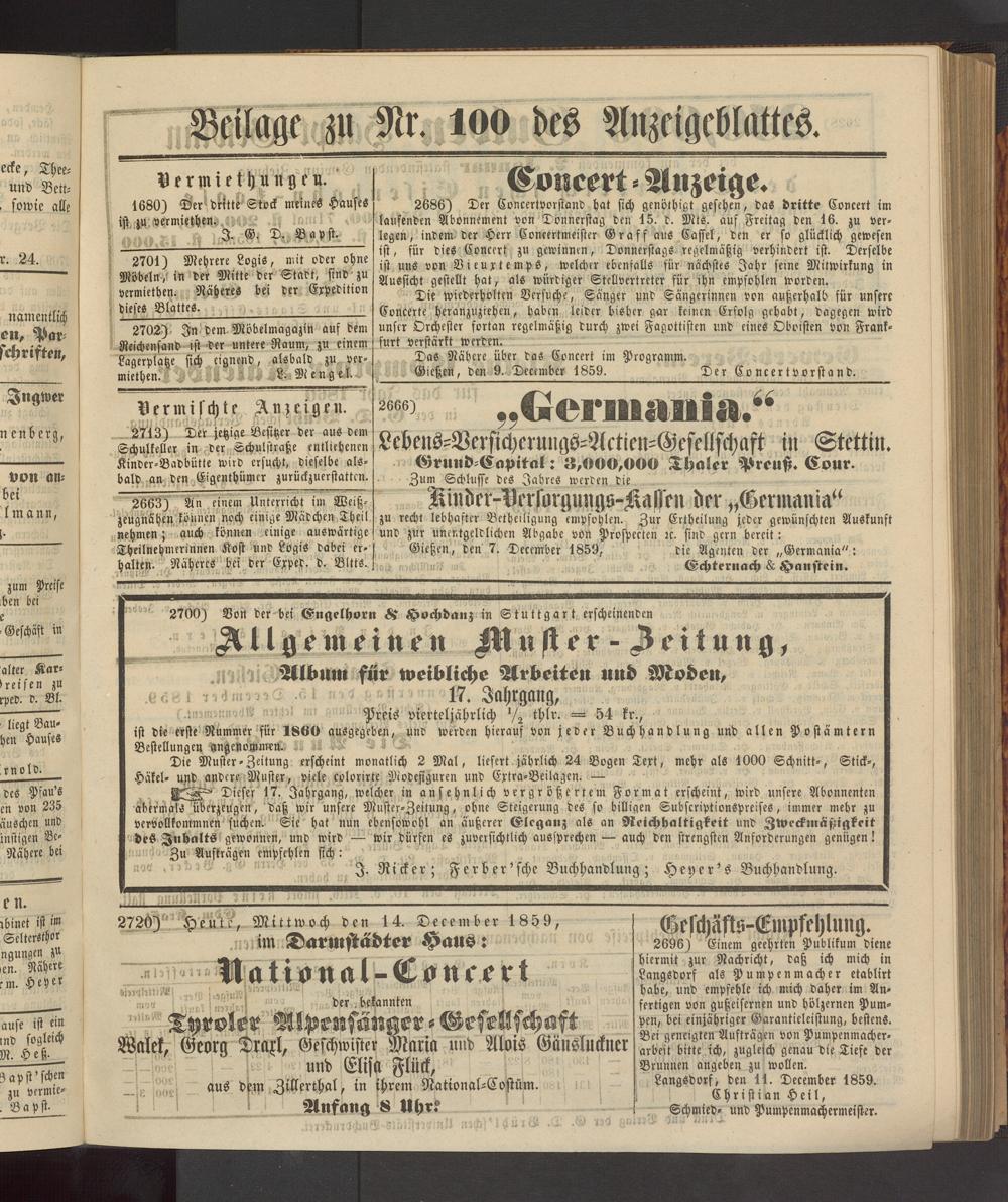 Gießen, den 9. December 1859. Der Concertvorstand.