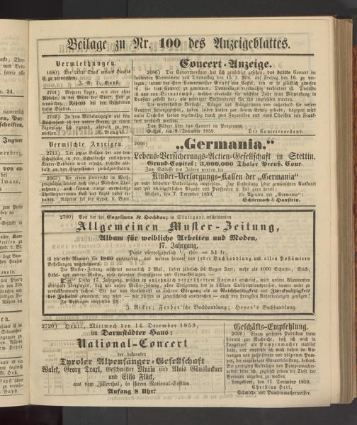2720) Heute, Mittwoch den 14. December 1859, im Darmstädter Haus: