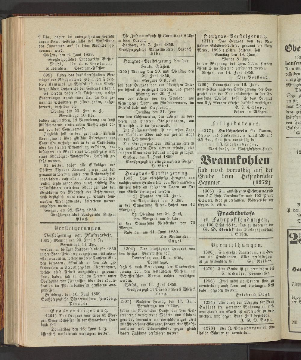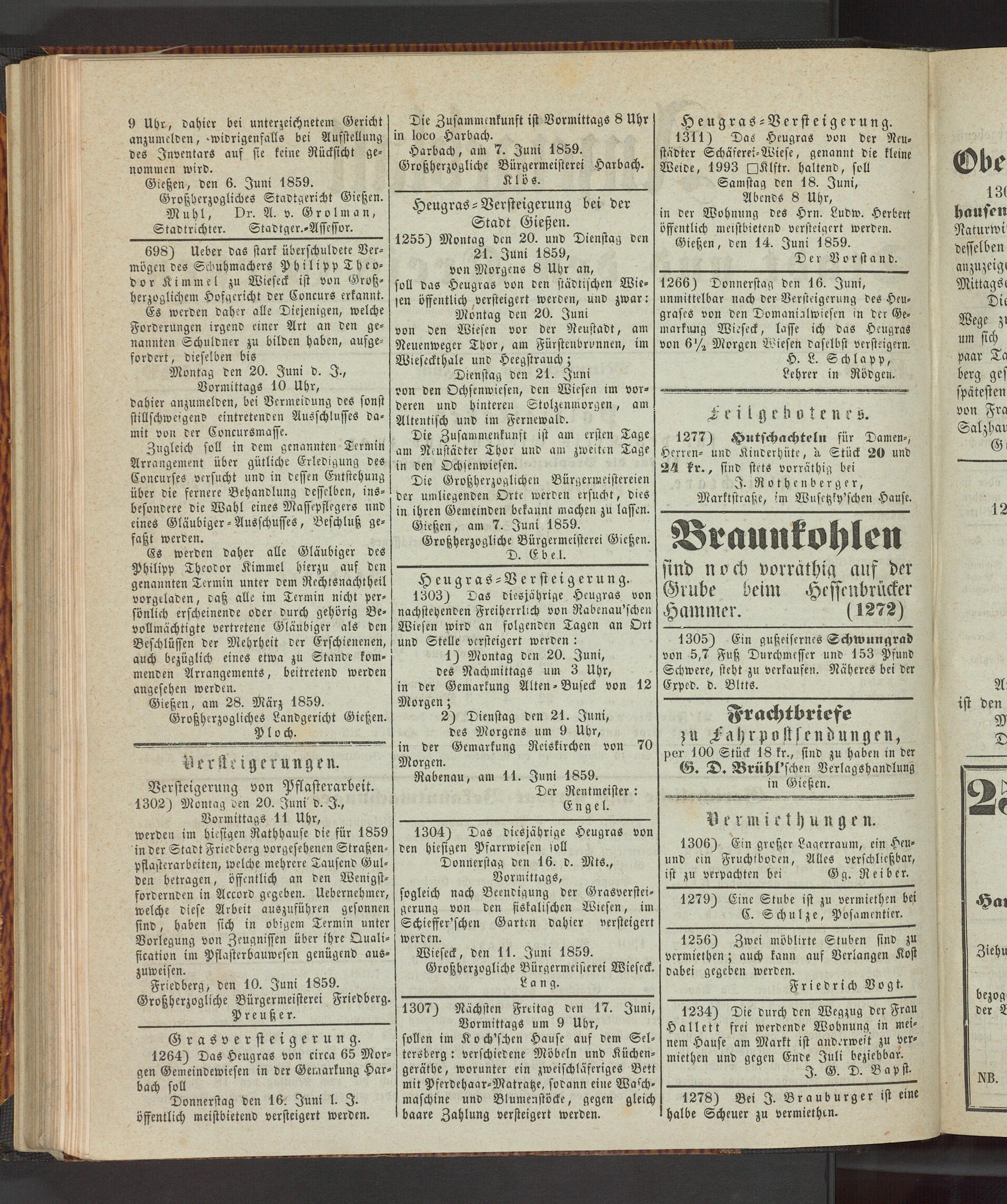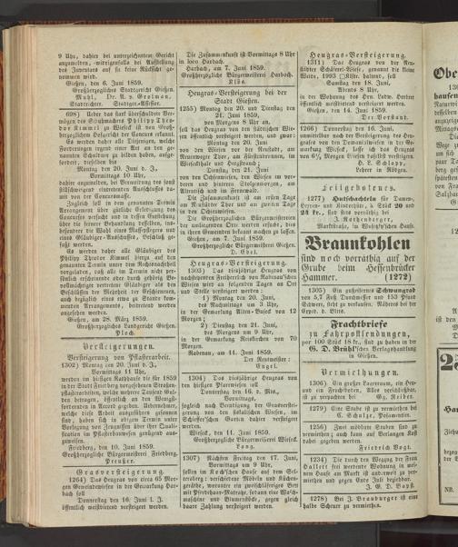 Gießen, den 6. Juni 1859. Großherzoglickes Stadtgericht Gießen.