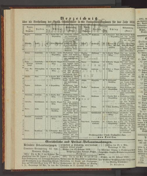 über die Verkeilung der Großh. Landbeschäler in