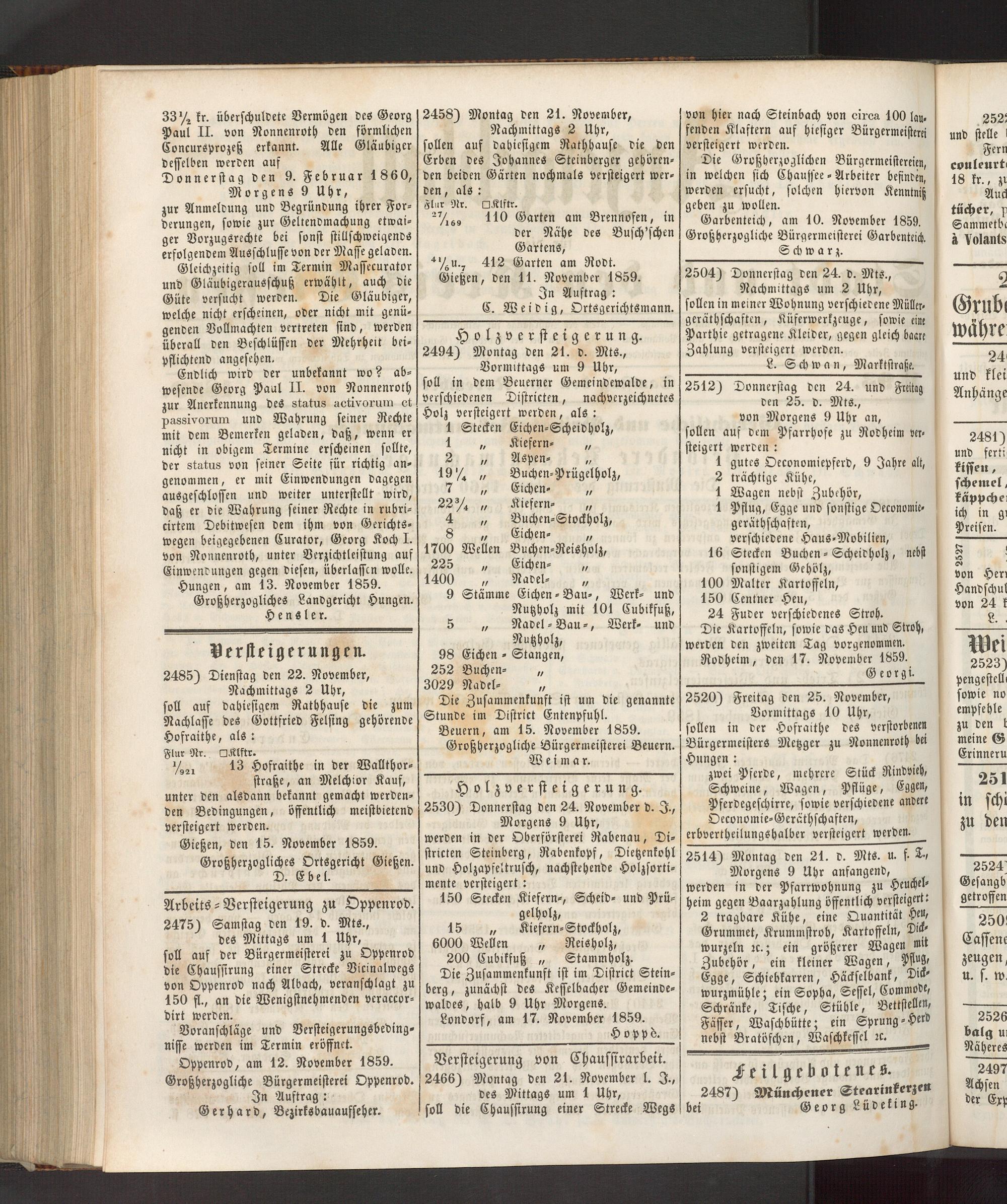 2520) Freitag den 25. November, Bormittags 10 Uhr, sollen in der Hofraithe des verstorbenen Bürgermeisters Metzger zu Nonnenroth bei Hungen: