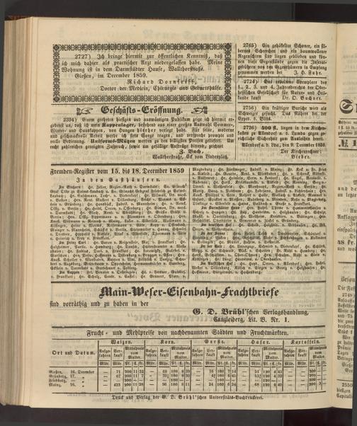 Fremden-Register vom 15. bis 18. December 1859