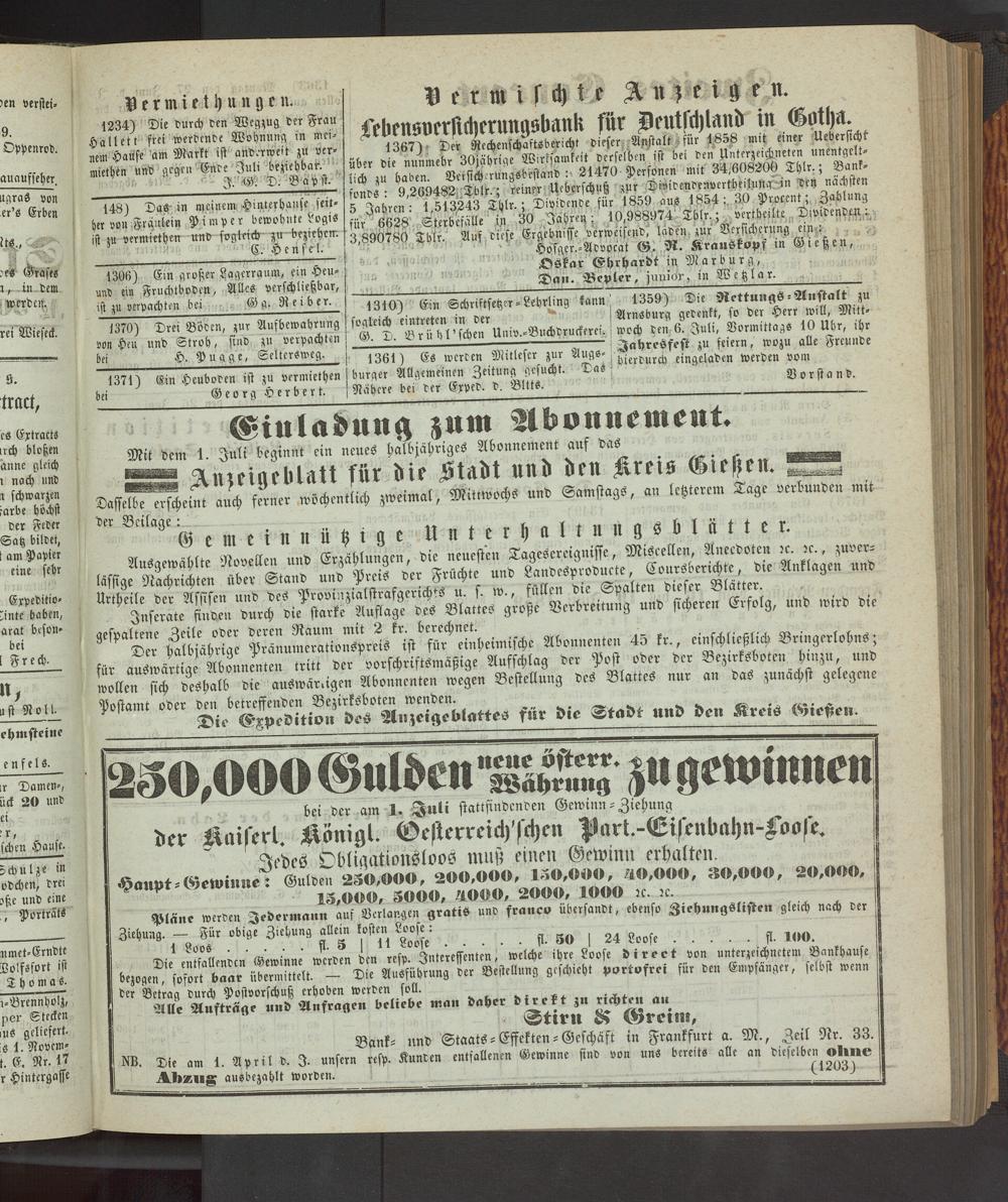 1359) Die Rettungs-Anstalt zu Arnsburg gedenkt, so der Herr will, Mittwoch den 6. Juli, Vormittags 10 Uhr, ihr Jahrcöfest zu feiern, wozu alle Freunde hierdurch eingeladen werden vom