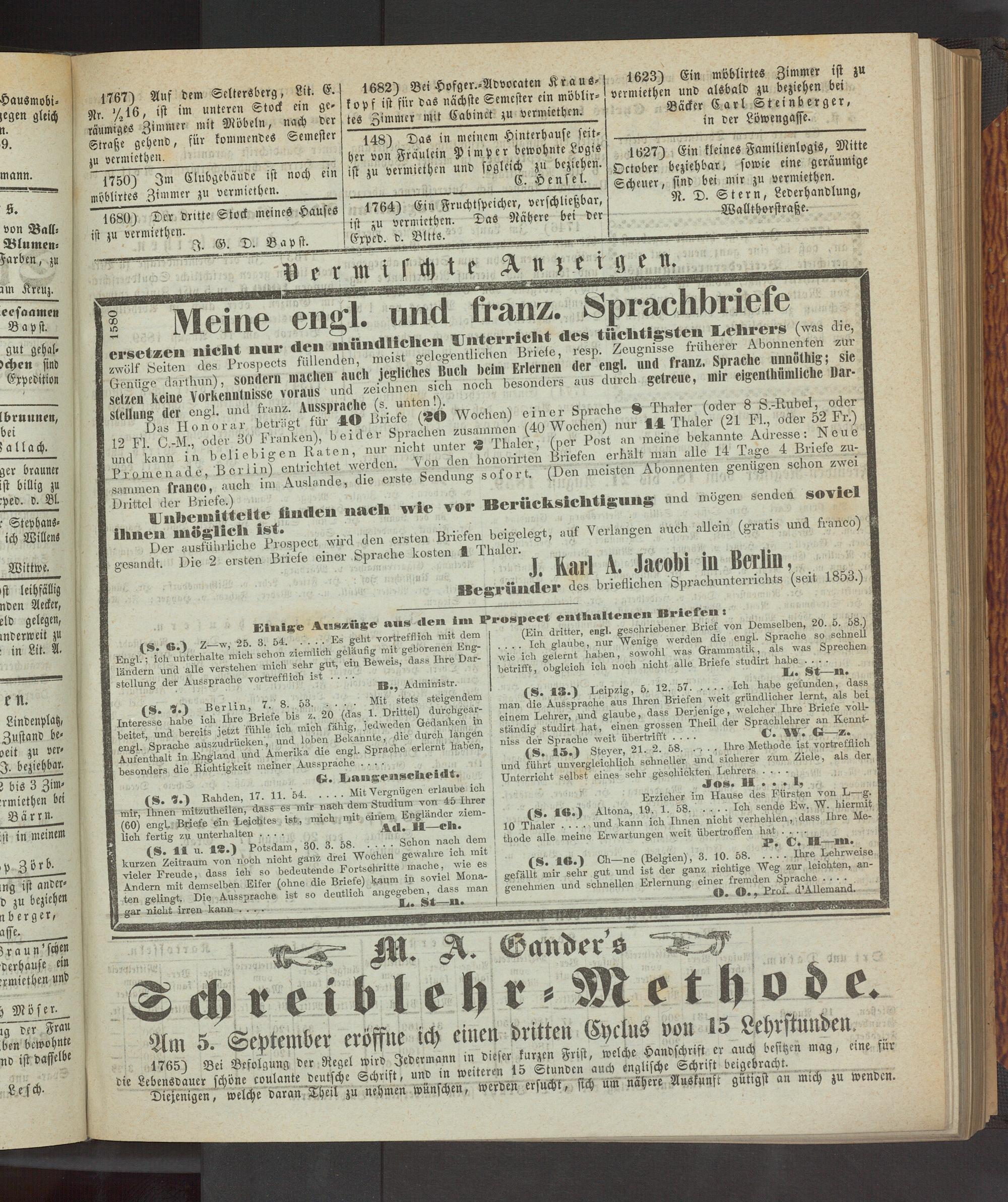 ITSO)- Im Clubgebäure ist noch ein möblirtes Zimmer zu vermiethen. “1680) Der dritte Stock meines Hauses ist zu vermiethen. ~
