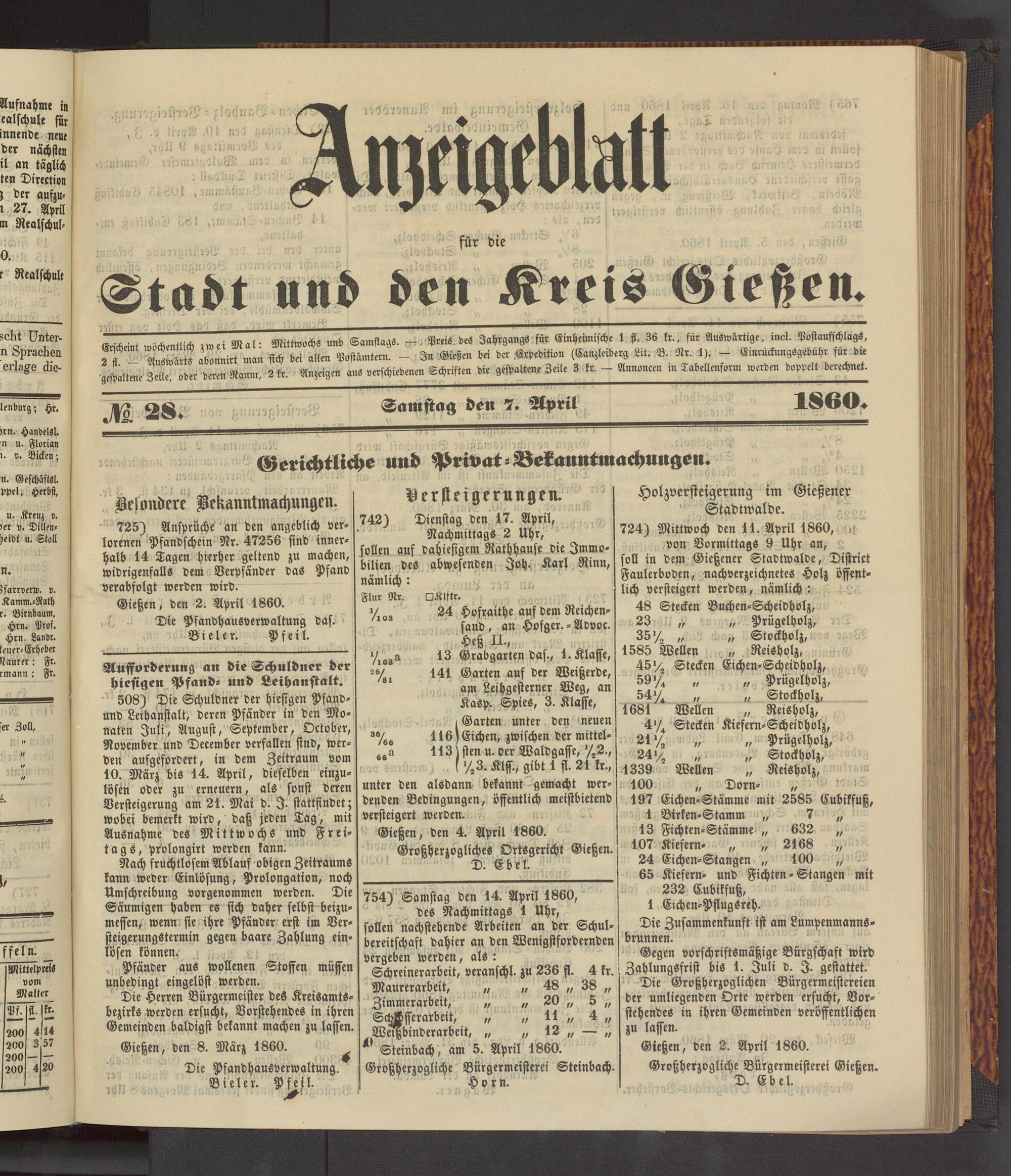754) Samstag den 14. April 1860, des Nachmittags 1 Uhr,
