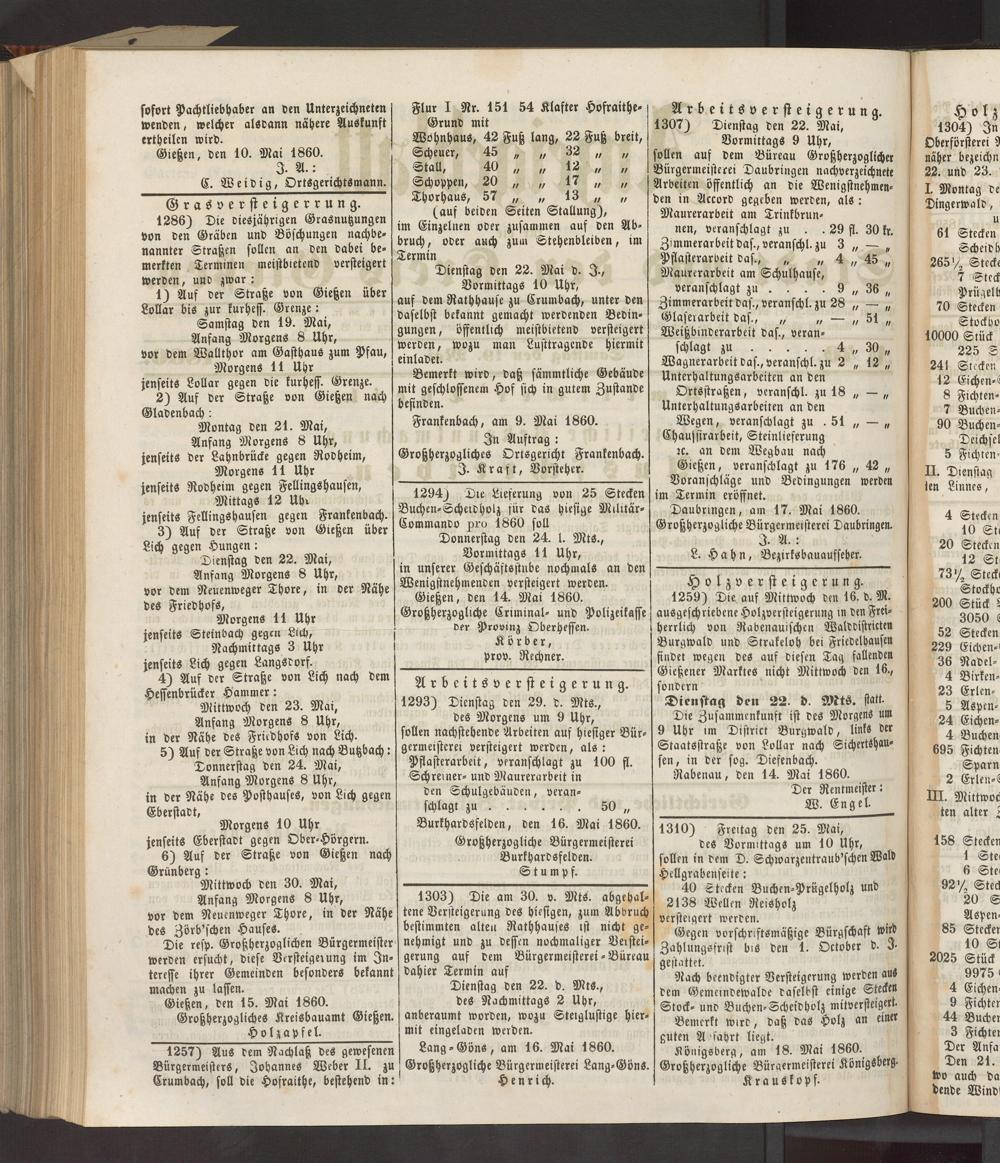 Daubringen, am 17. Mai 1860. Großherzogliche Bürgermeisterei Daubringen.