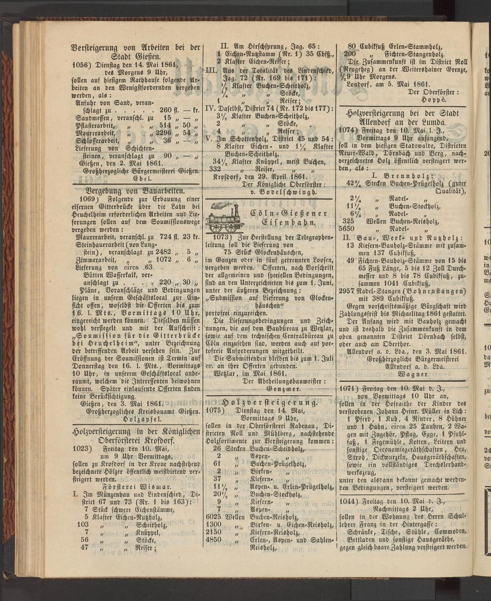 Allendorf a. d. Lda., den 3. Mai 1861. Großherzogliche Bürgermeisterei Allendorf a. d. Lda.