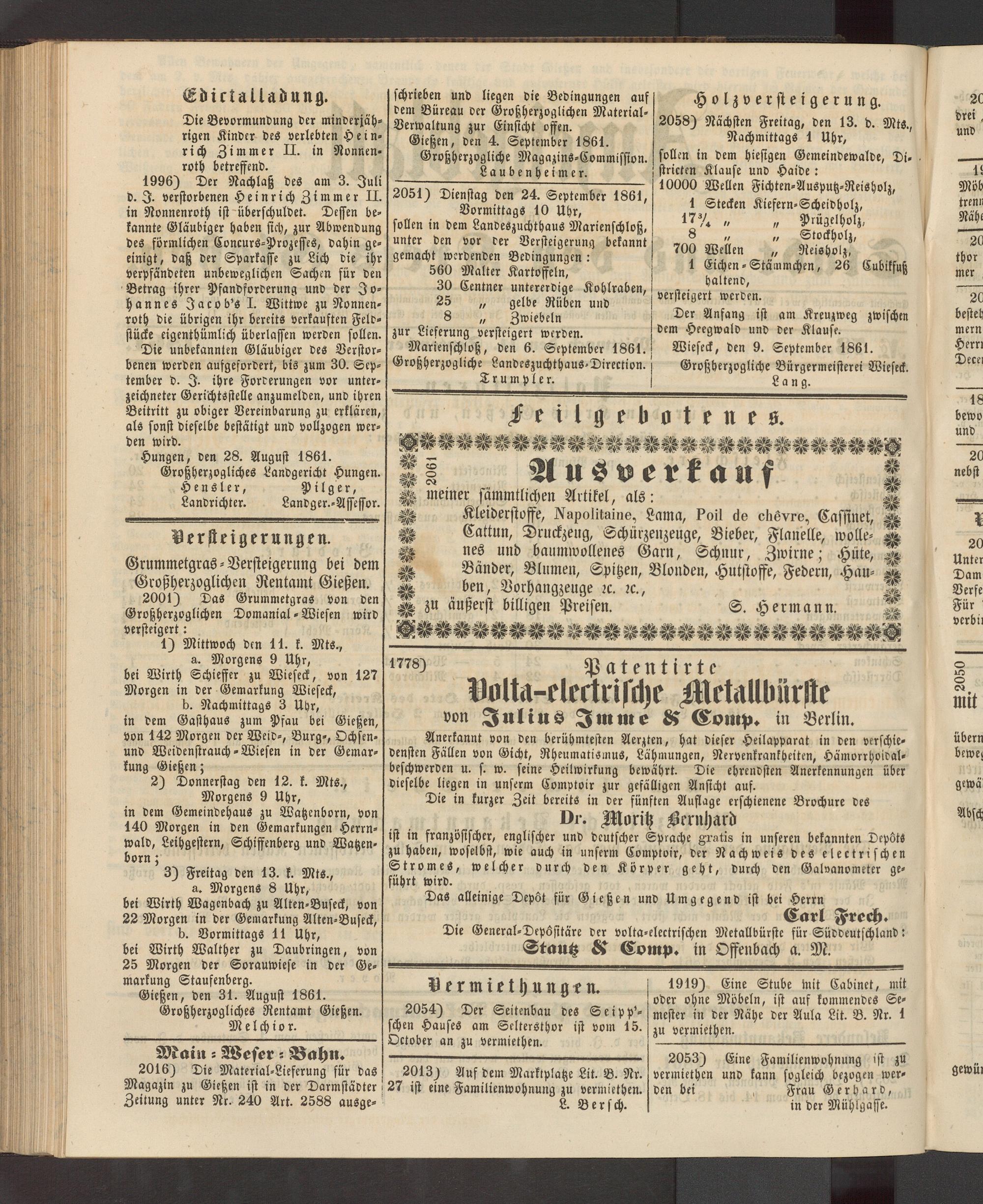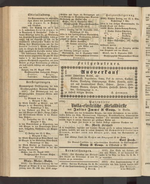 Gießen, den 4. September 1861. Großherzogliche Magazins-Commission. __________Laubenheimer.