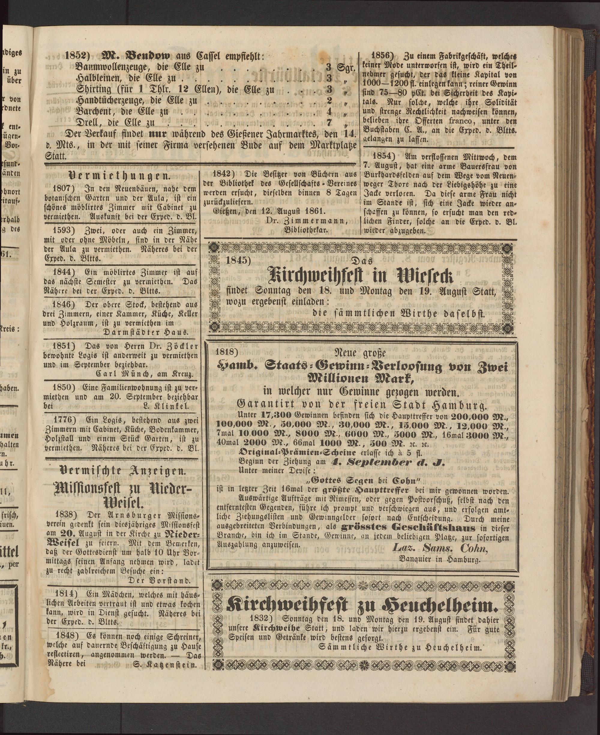 Gießen, Pen 12. August 1861.