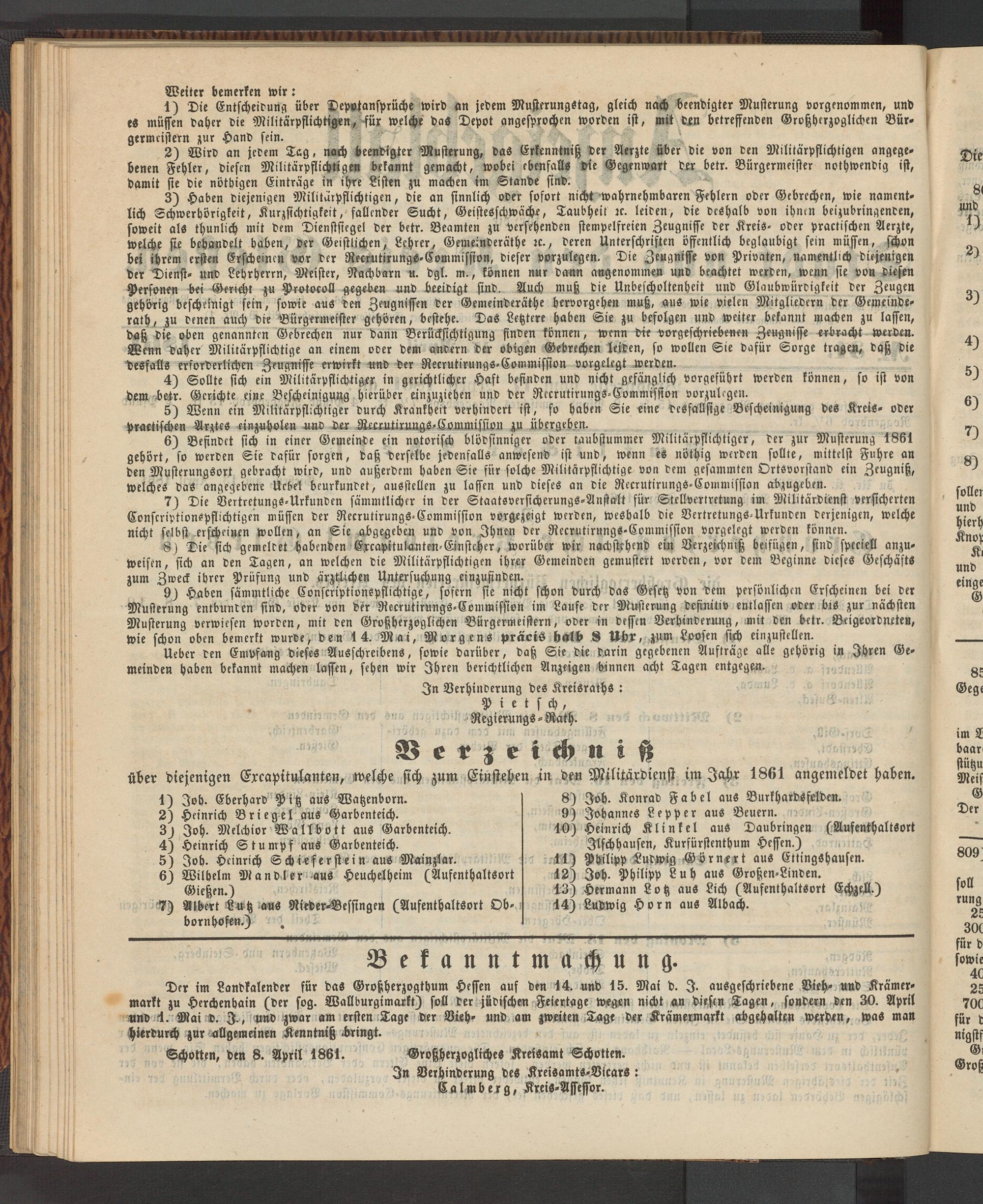 Schotten, den 8. April 1861. Großherzogliches Kreisamt Schotten.
