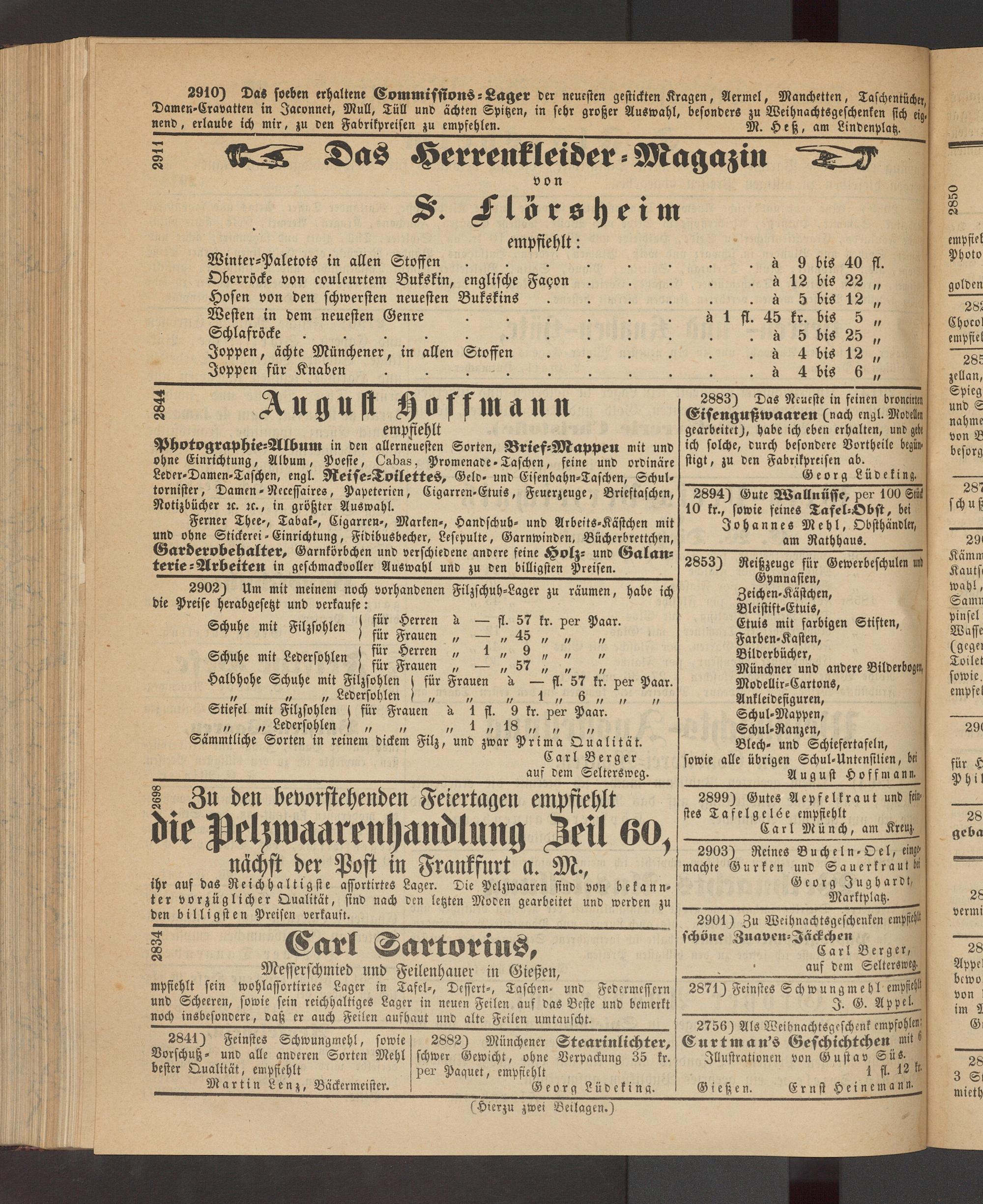 ihr auf das Reichhaltigste assortirtes Lager. Die Pelzwaaren sind von bekannter vorzüglicher Qualität, sind nach den letzten Moden gearbeitet und werden zu den billigsten Preisen verkauit.