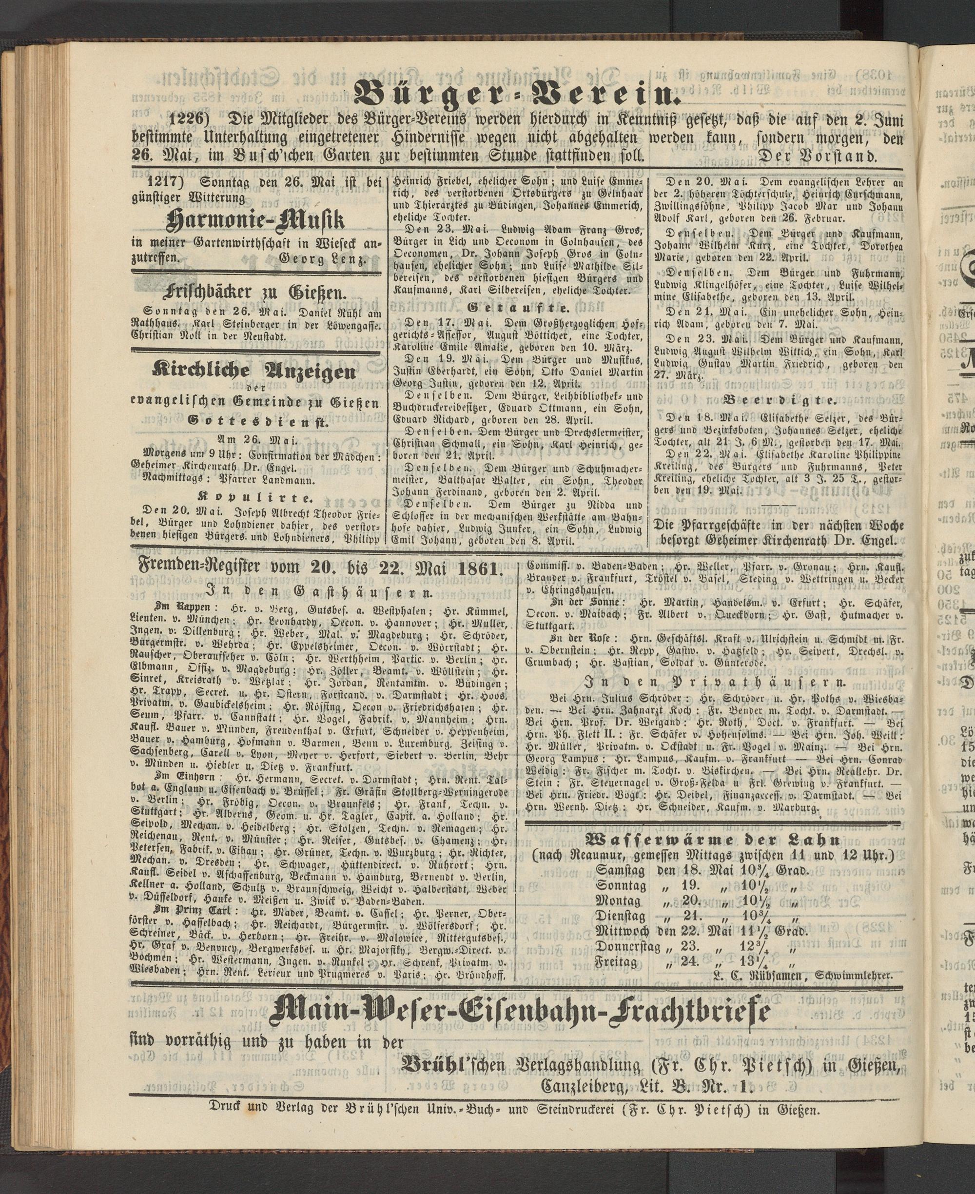 Fremden-Register vom 20. bis 22. Mai 1861.