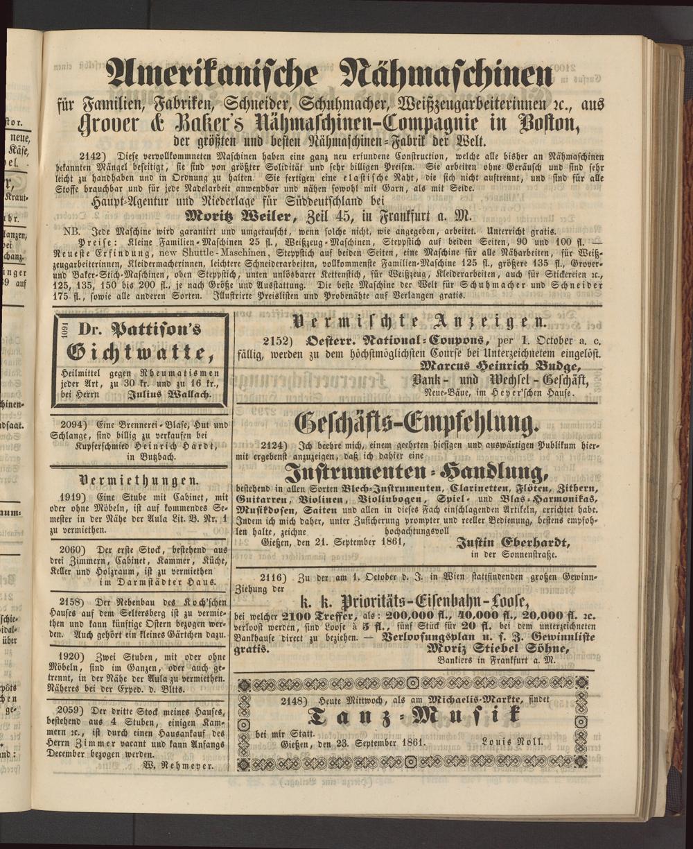 Gießen, den 21. September 1861, Justin Eberhardt,