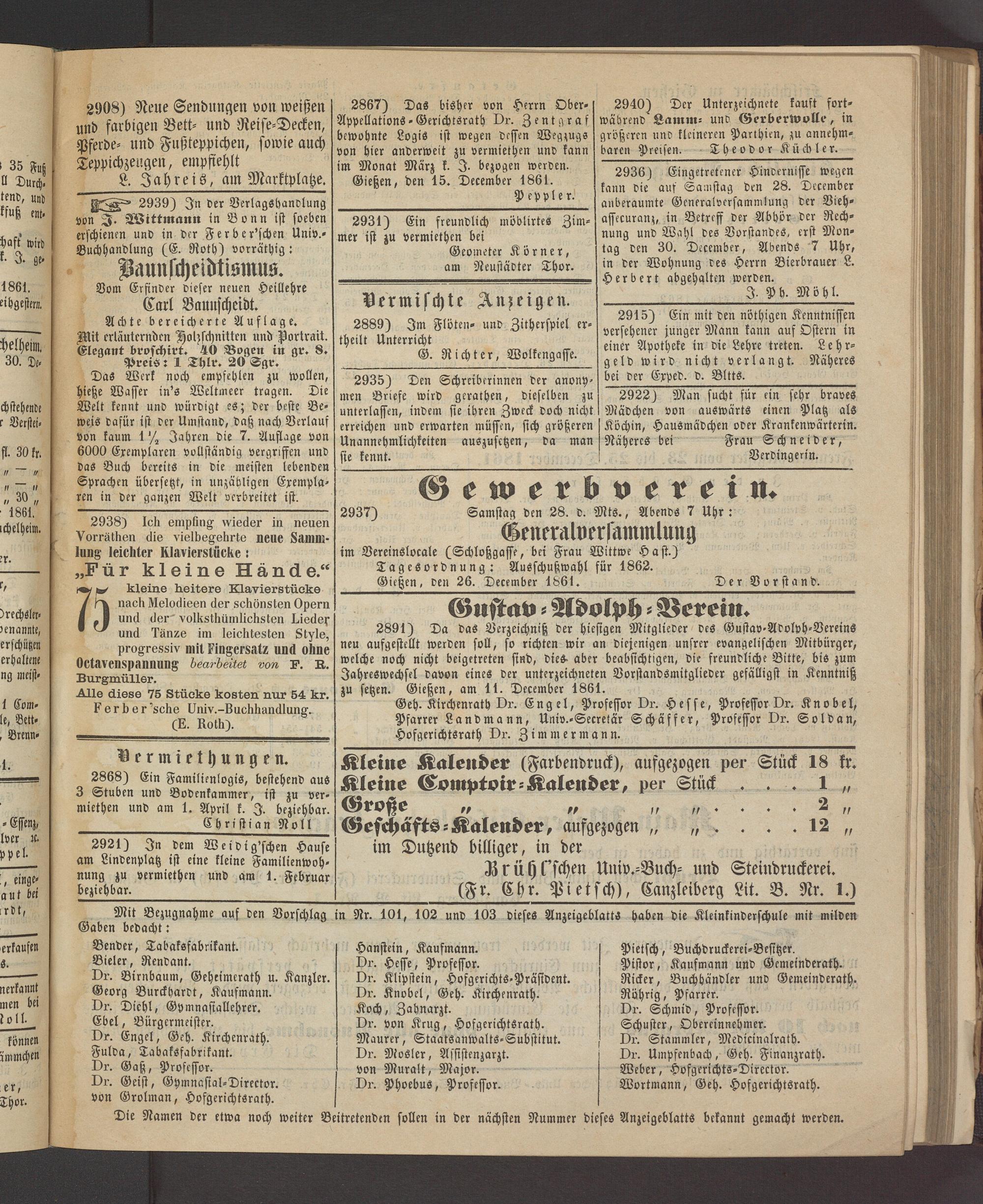 Gießen, den 26. Deeember 1861. Der Vorstand.