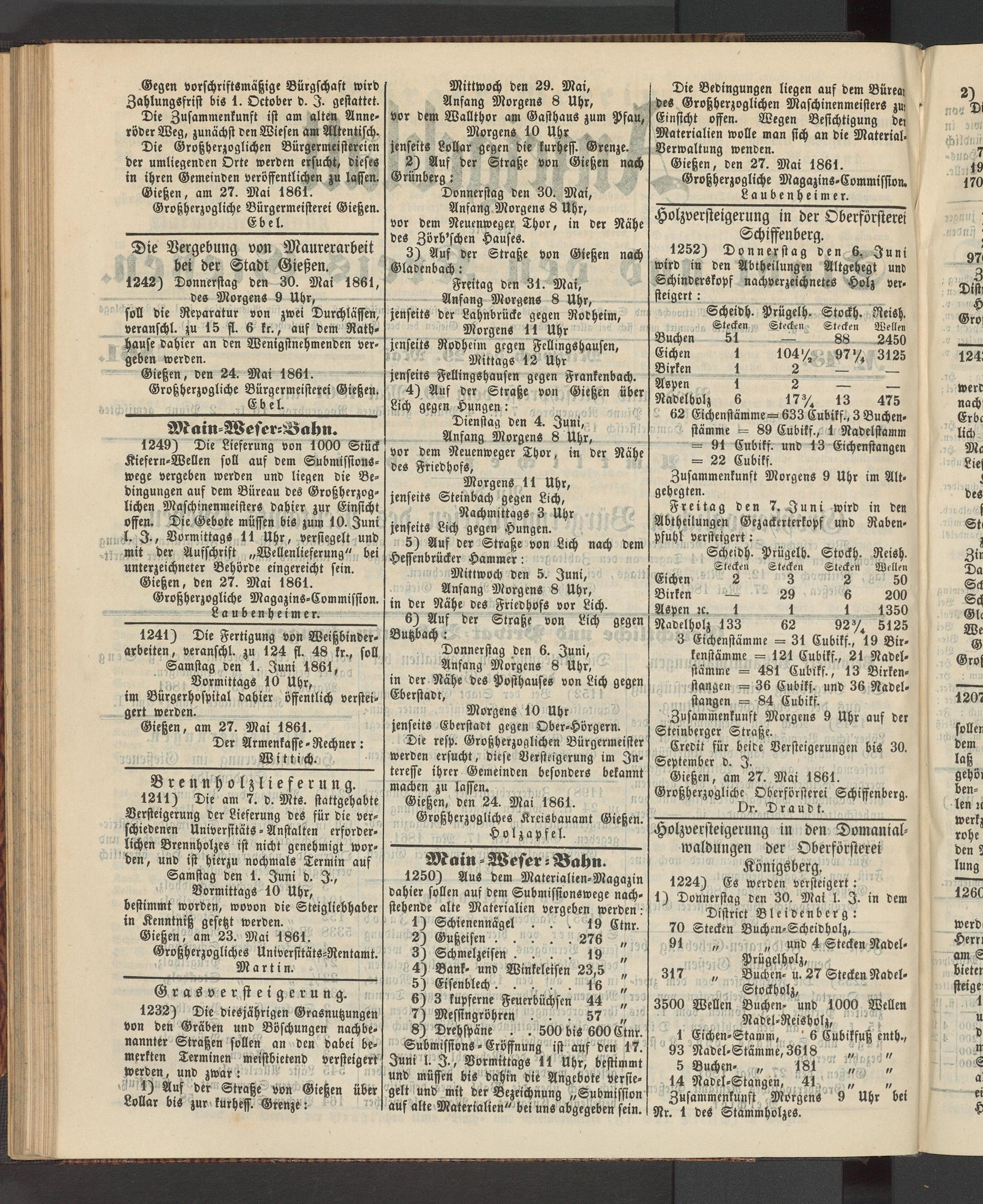 Gießen, am 27. Mai 1861. Großherzoglichc Oberförsterei Schiffenberg.