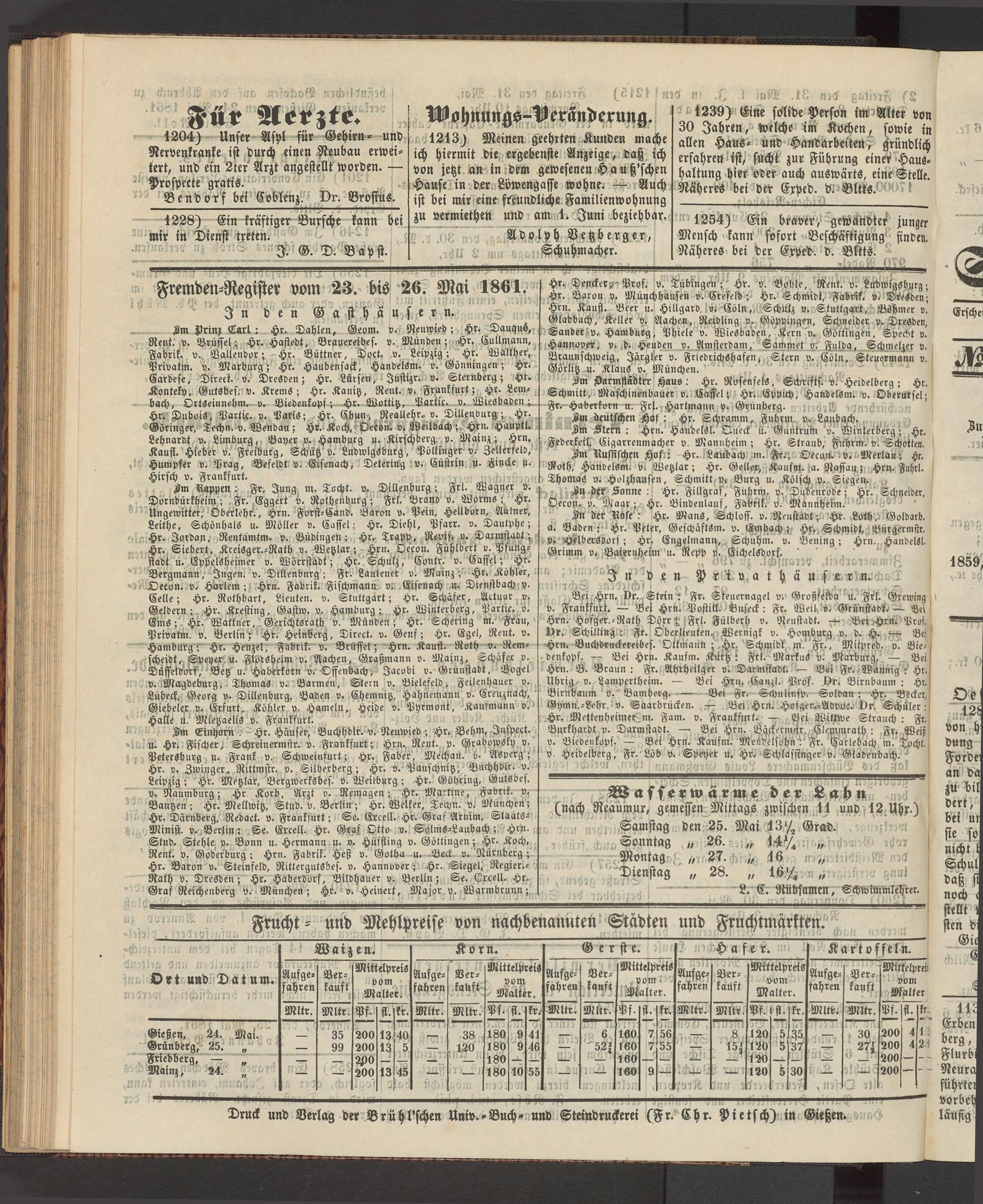 Fremden-Register vom 23. bis 26. Mai 1861.