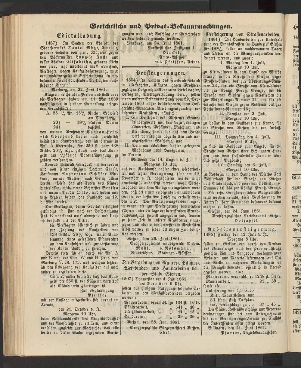 Marburg, am 24. Juni 1861. Kurfürstliches Justizamt I.