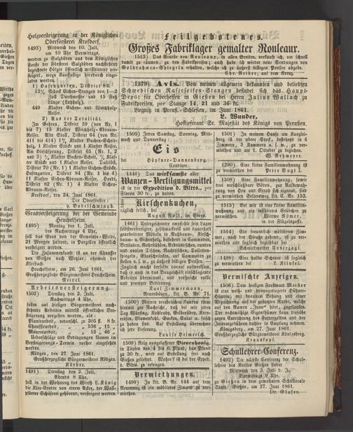 1446) Das wirksamste aller Wanzen - Vertilgungsmittel ist in der Expedition d. Bltts., per Flacon 30 kr., zu haben.__________________