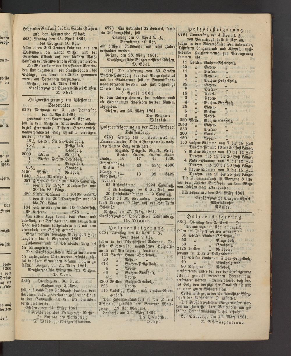 Die Großherzoglichen Bürgermeistereien der umliegenden Orte werden ersucht, dieses in ihren Gemeinden bekannt machen zu lassen. Gießen, am 21. März 1861.