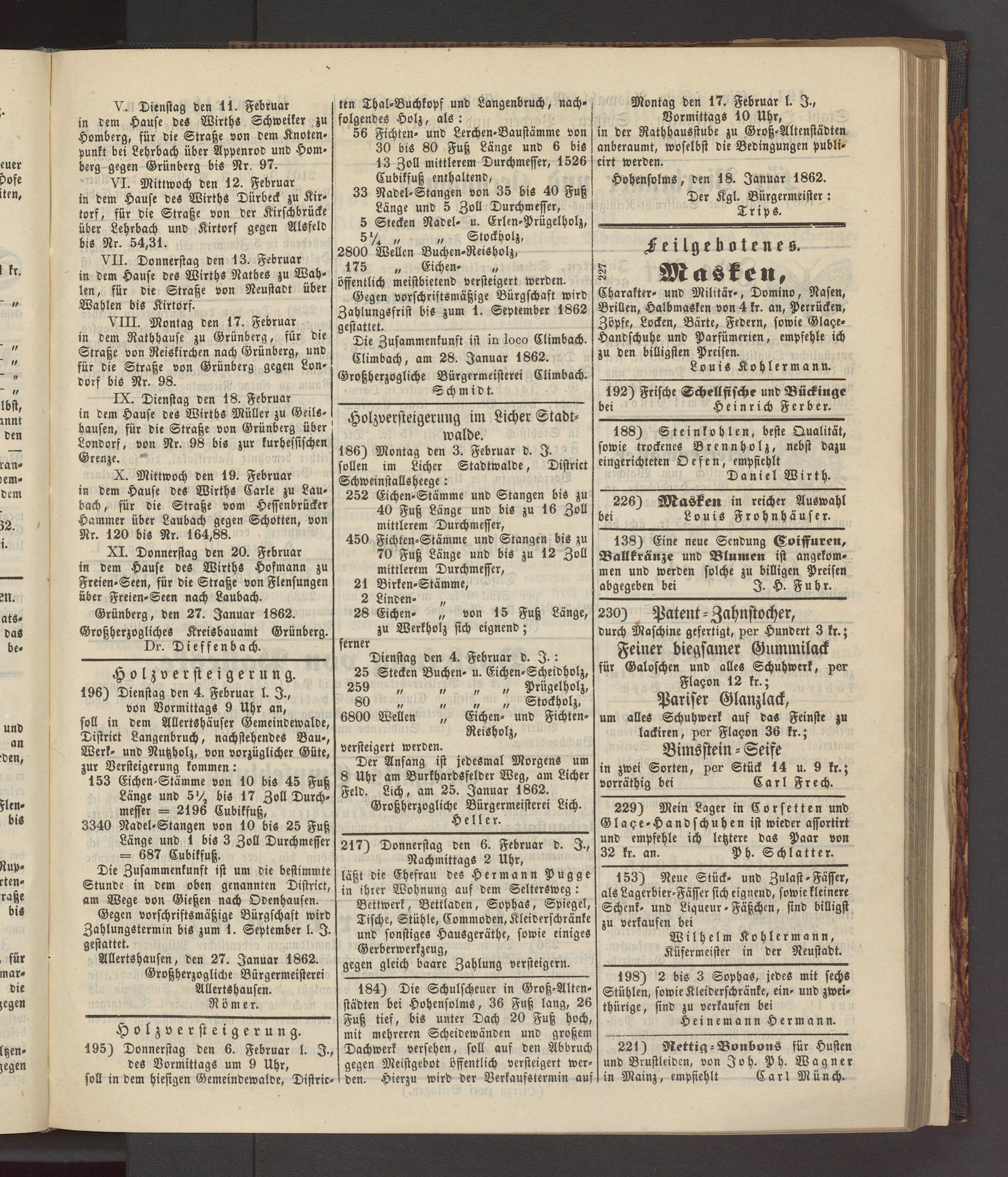 Der Anfang ist jedesmal Morgens um 8 Uhr am Burkhardsfelder Weg, am Licher Feld. Lich, am 25. Januar 1862.