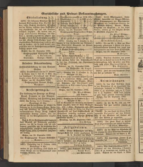 Gießen, am 29. September 1862. Großherzogliches Rentamt Gießen.