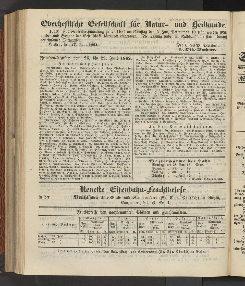 Gießen, den 27. Juni 1862. Der z. corresp. Secretär: