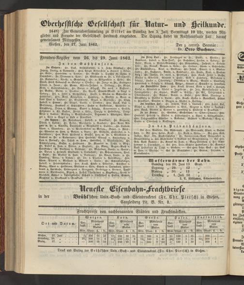 Bei Hrn. Reallehr. Dr. Bindewald : Hr. Bindewald, Pfarr. v. Busenborn. — Bei Hrn. Heinr. Kraft : Frl. Roth v. Nidda. — Bei Hrn. Geh. Justizr. Prof. Dr. Wafferschleben: Fr. Landöconom.-Nath Griepenkerl v. Braunschweig u. Frl. Mohrmann v. Lucklum bei Braunschweig. — Bei Hrn. Geh. Rath Küchler: Fr. Kempf m. Fam. v. Burg-Dernbach u. Frl. Lichthammer v. Darmstadt. — Bei Hru. Univ.-Richter Haberkorn; Fr. Kamm.- Rath Haberkorn m. Tocht. v. Birstein. — Bei Hrn. Lehr. Beck: Hr. Beck m. Fam. v. Chicdyo. — Bei Fr. Mayländer: Hr. Bender, Privatm. v. Mornshausen.