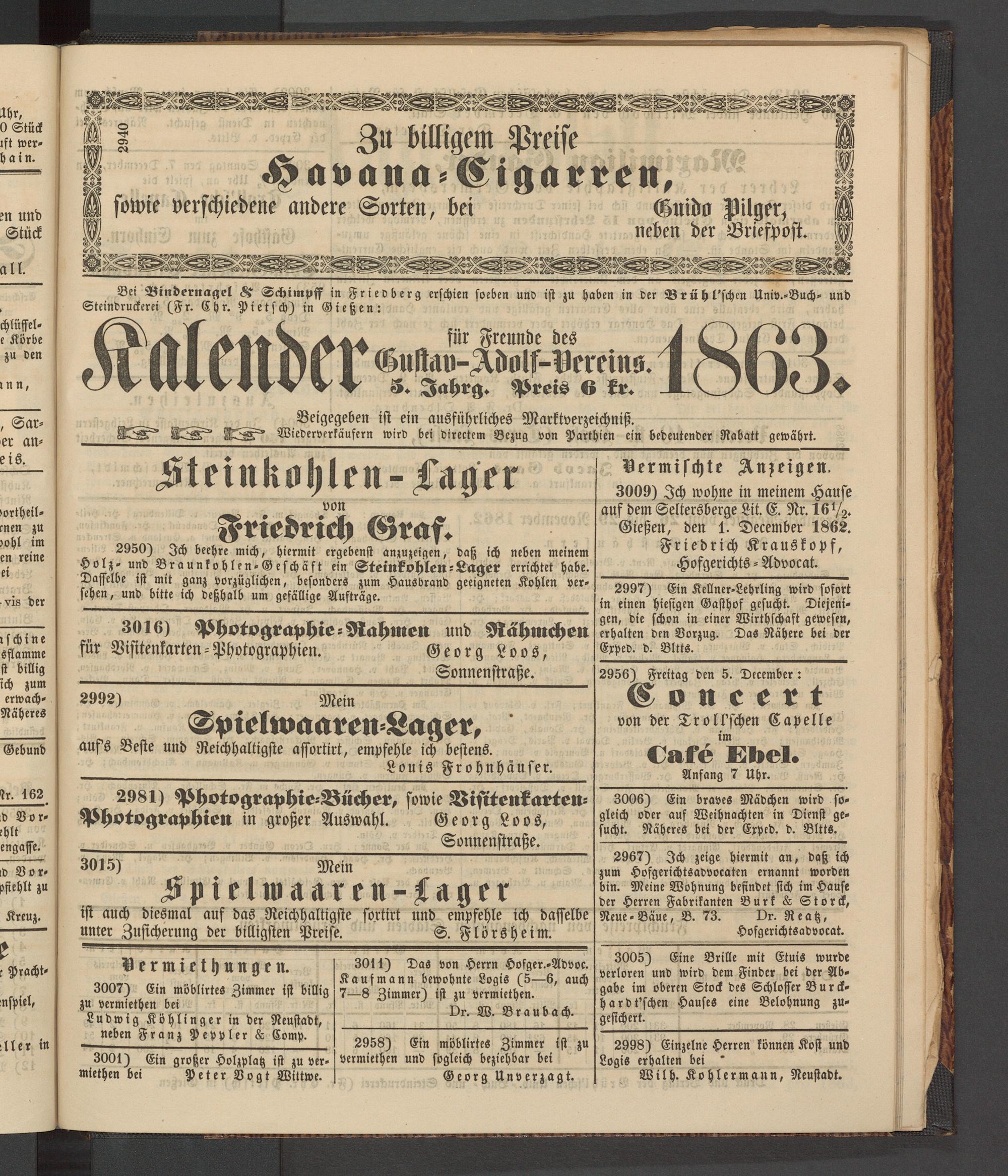 Gießen, den 1. December 1862. Friedrich Krauskopf, Hofgerichts - Advocat.