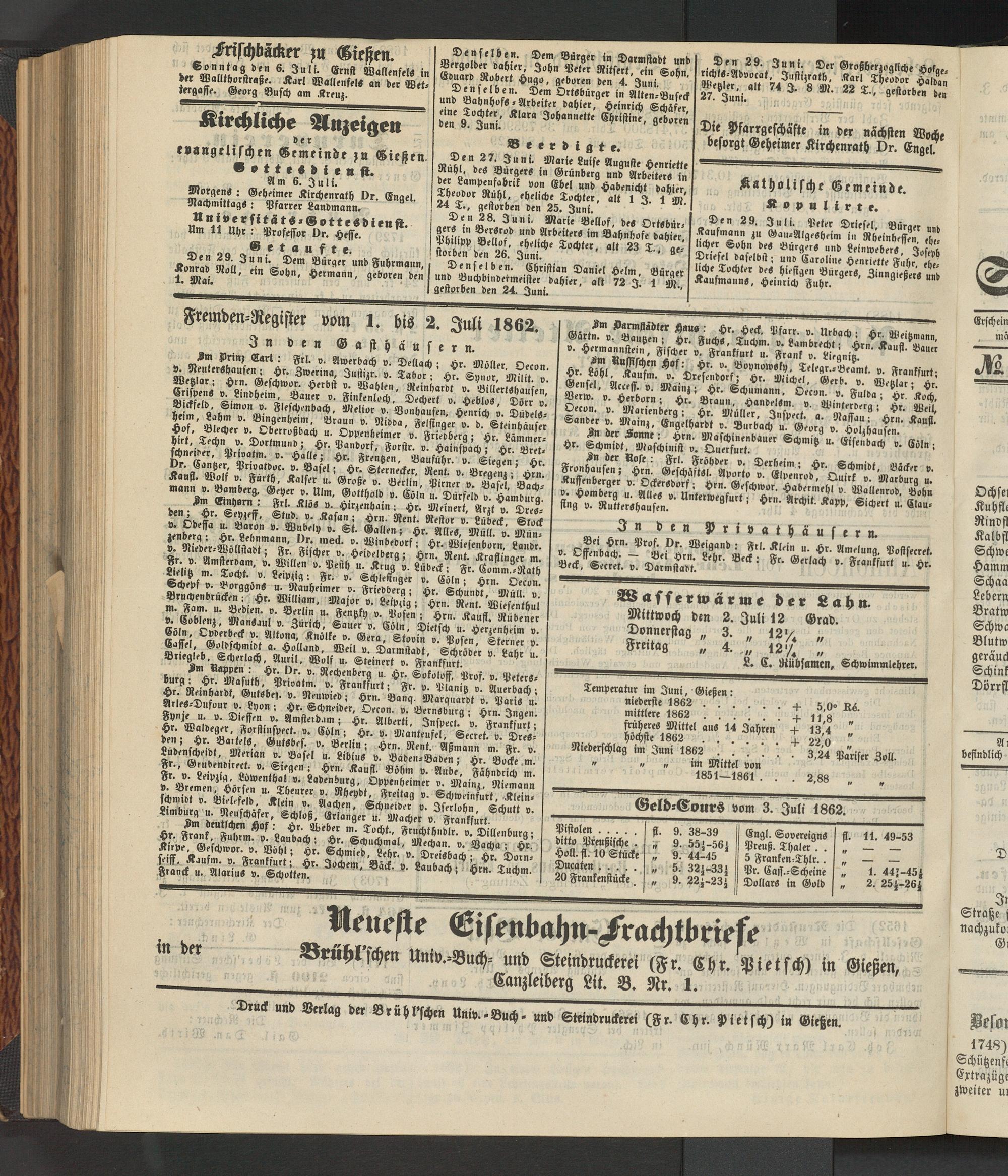 Temperatur im Juni, Gießen: niederste 1862 ... .