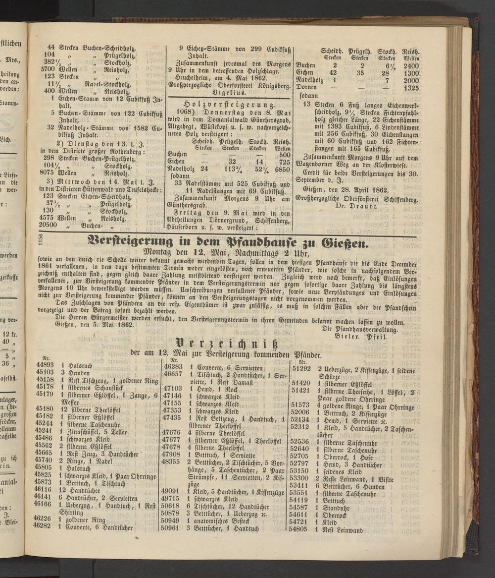 Heuchelheim, am 4. Mai 1862. Großherzogliche Obcrförsterei Königsberg. __________________Vigelius.____________