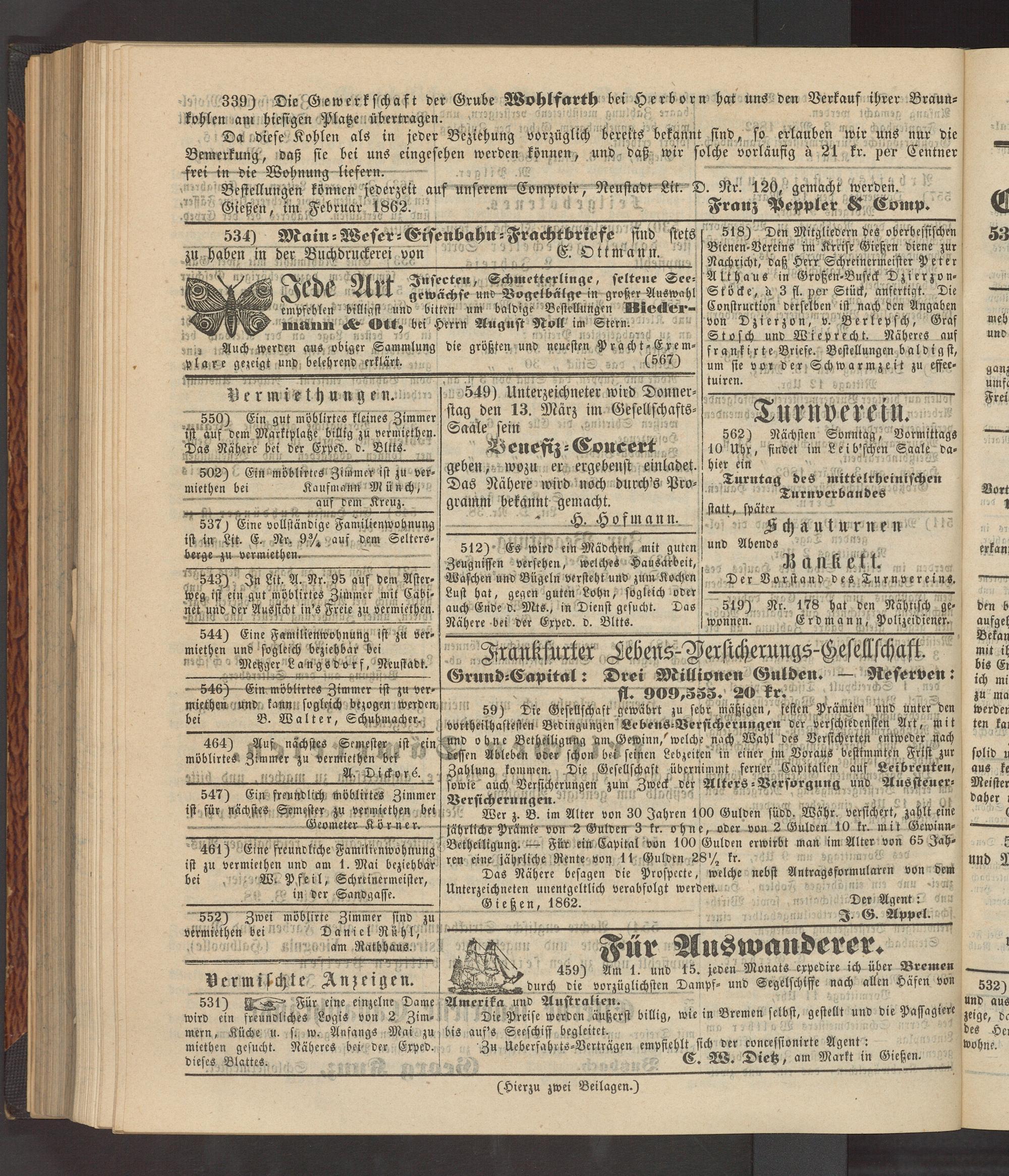 Gießen, im Februar 1862. Franz Peppler & Comp.