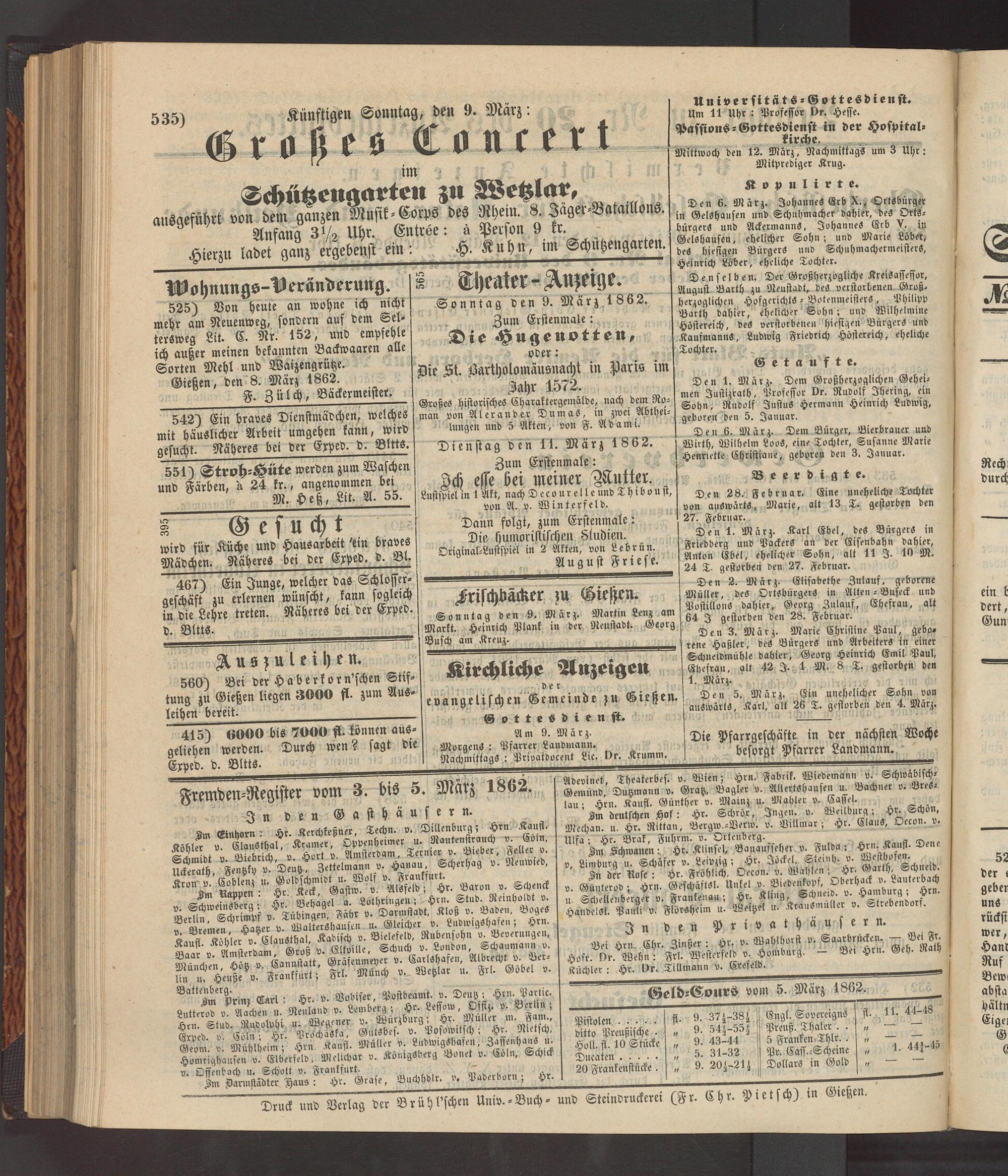 Bei Hrn. Ehr. Zinßer: Hr. v. Wahlhorst v. Saarbrücken. - Be^Fr Hokr. Dr. Wehn: Frl. Westerfeld v. Homburg. - Bei Hrn. Geh. Katy Küchler: Hr. Dr. Tillmann v. Crefeld. _