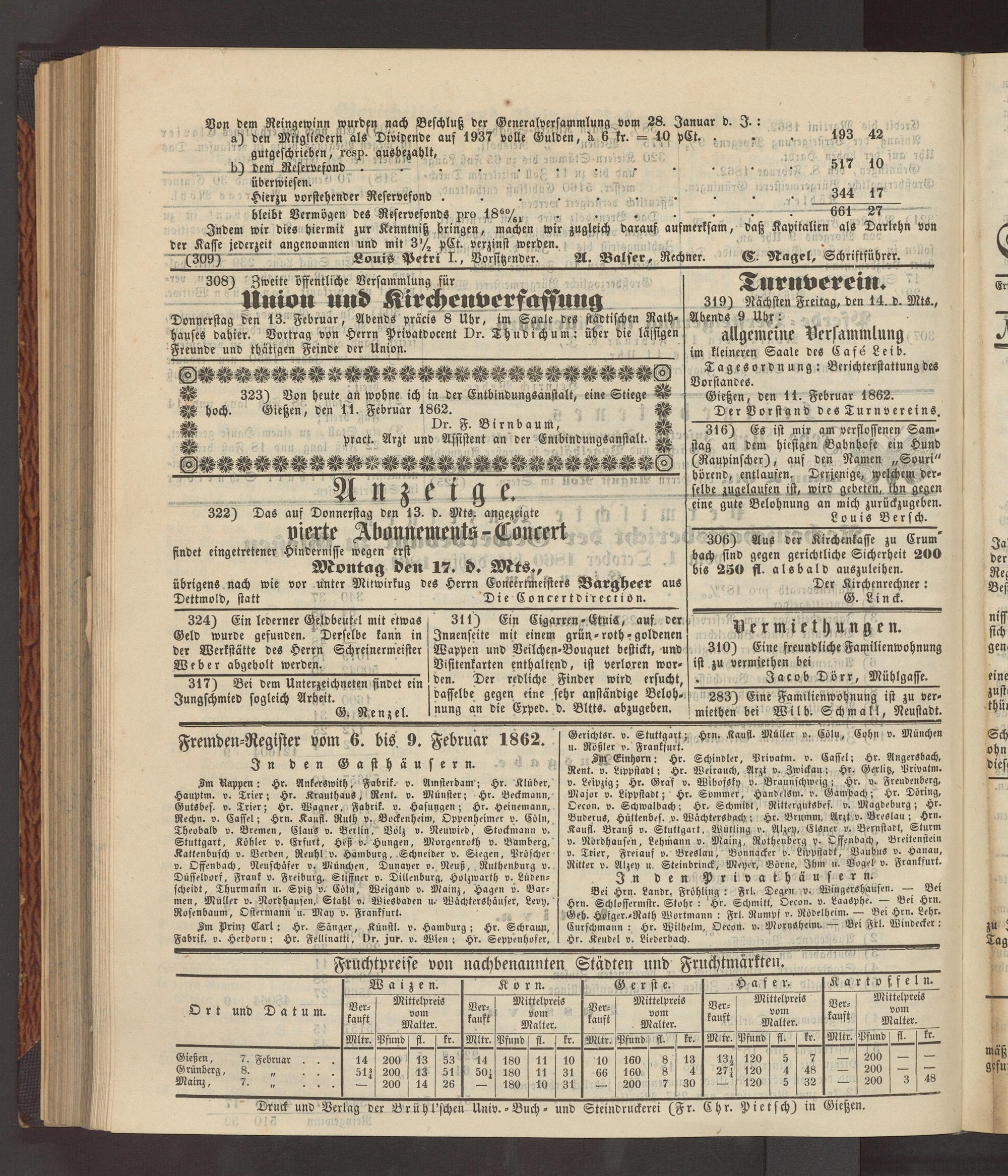 (309) Louis Petri I., Vorsitzender. A. Balser, Rechner. C. Nagel, Schriftführer.