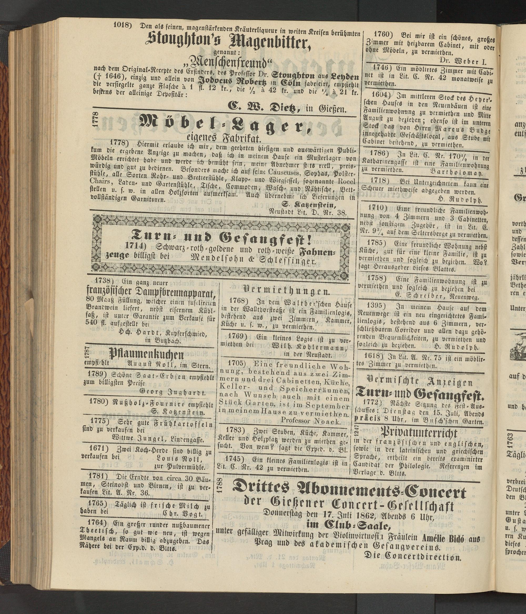 Donnerstag den 17. Juli 1862, Abends 6 Uhr