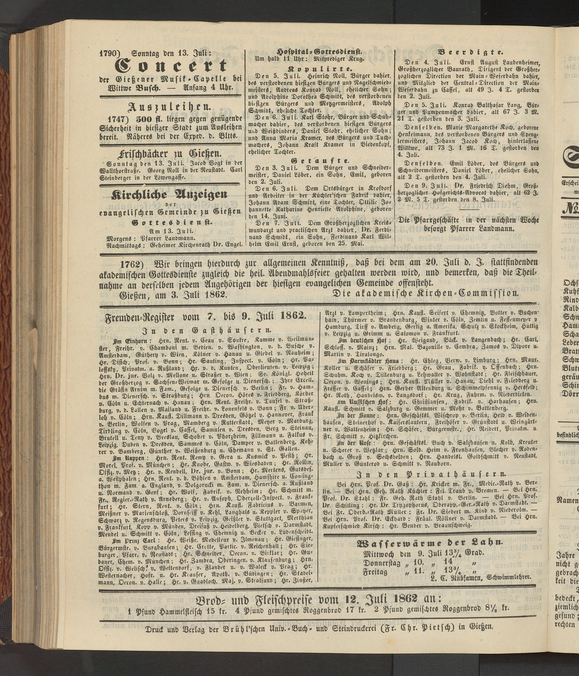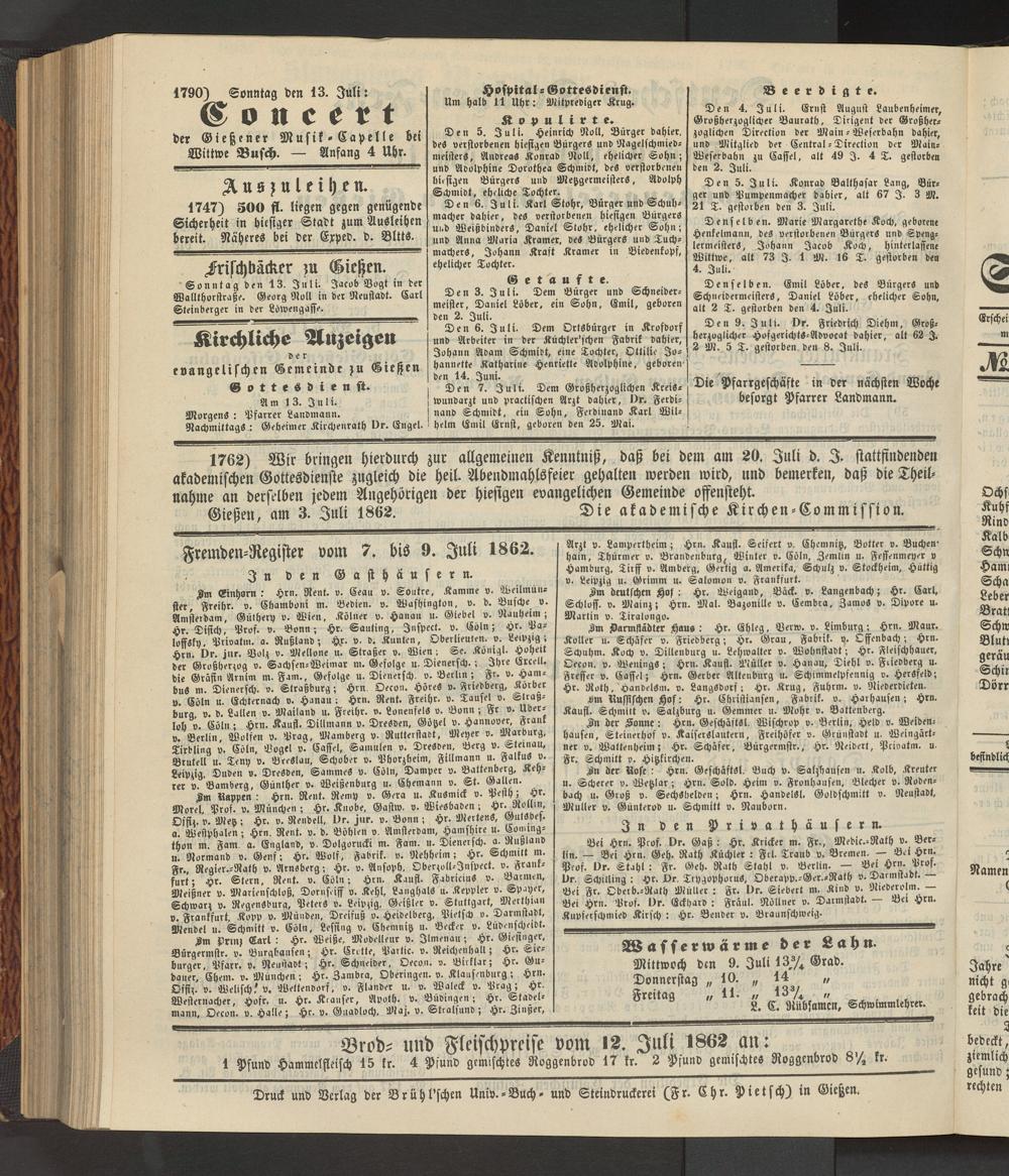 Fremden-Register vom 7. bis 9. Juli 1862.