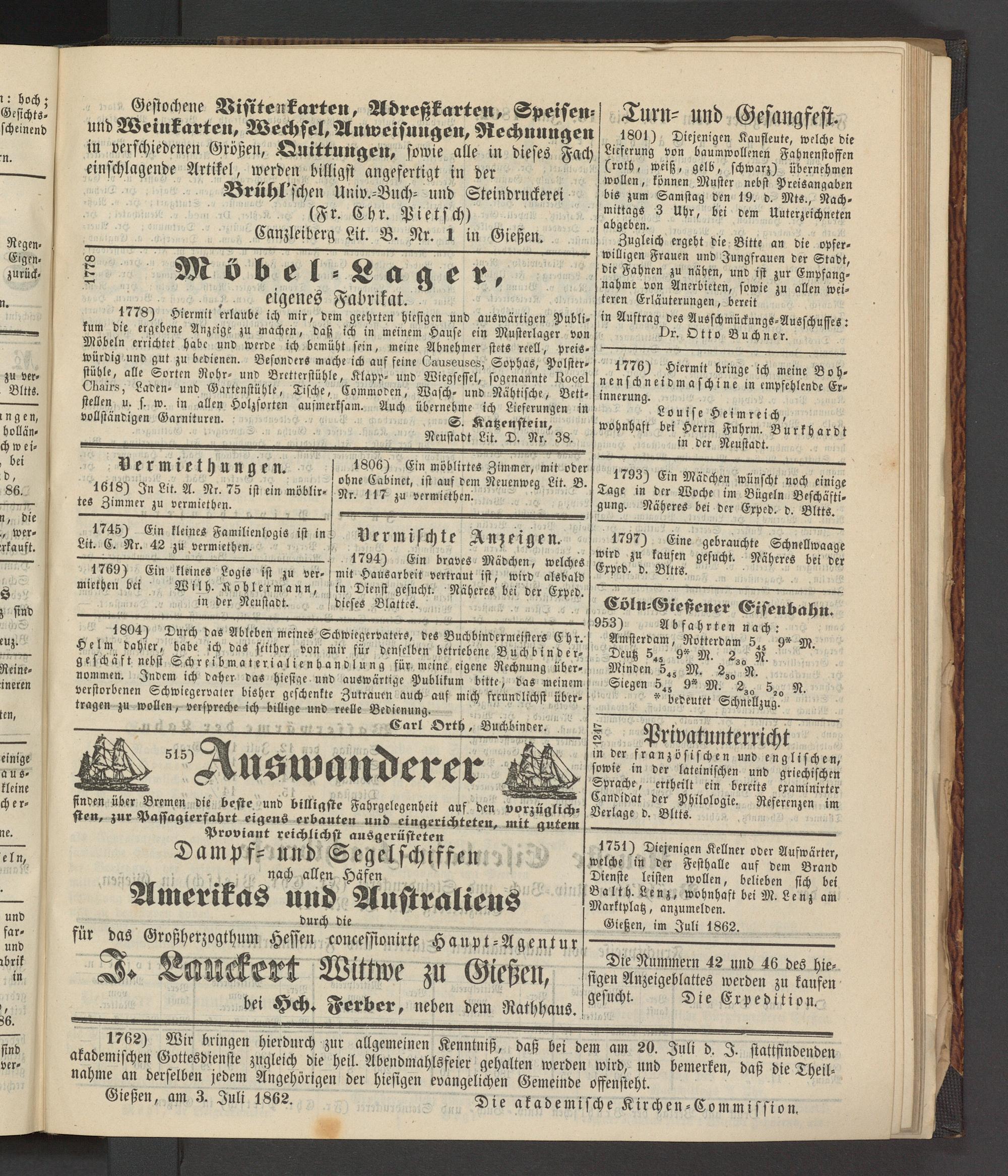 Gießen, im Juli 1862.