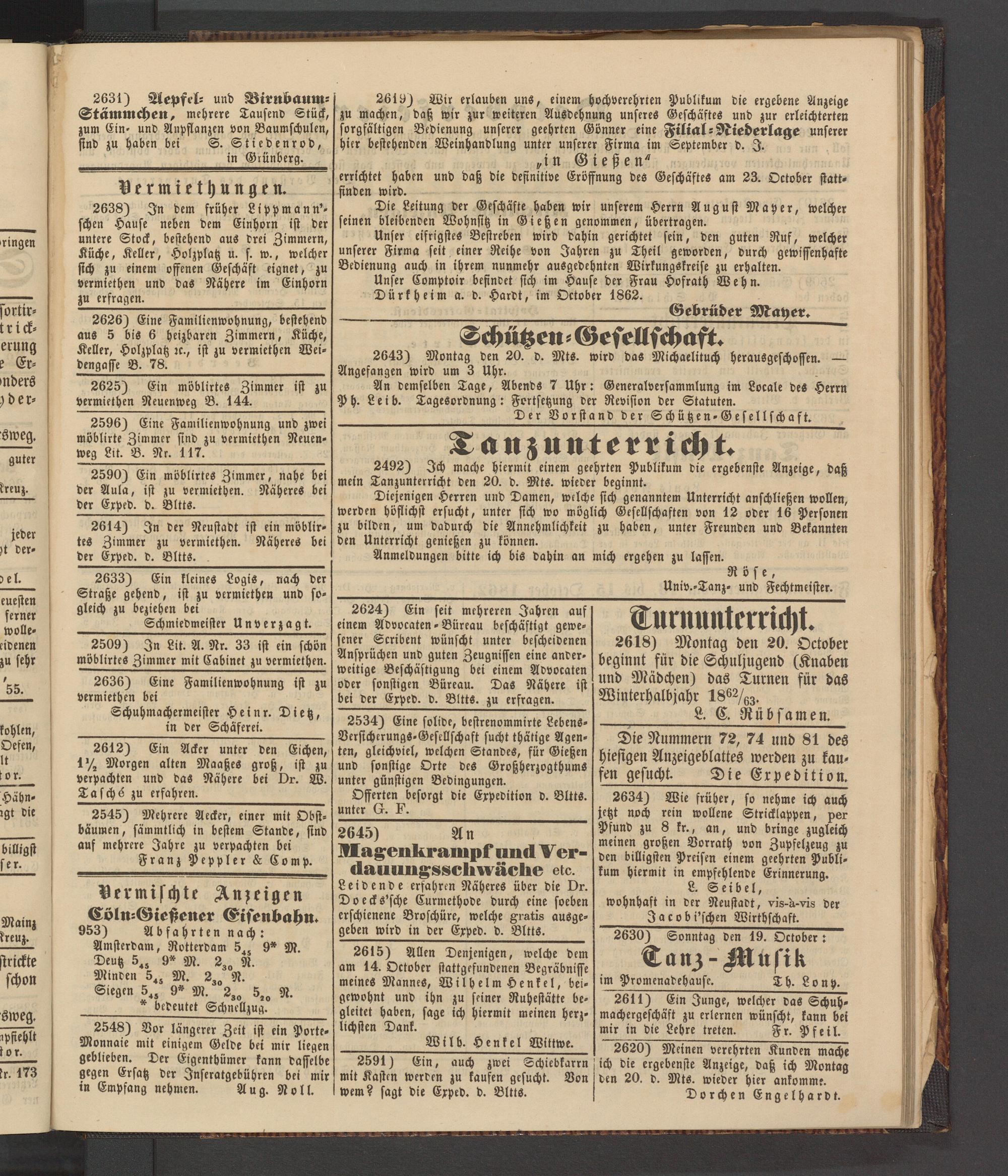 2618) Montag den 20. October beginnt für die Schuljugend (Knaben und Mädchen) das Turnen für das Winterhalbjahr 1862/63.