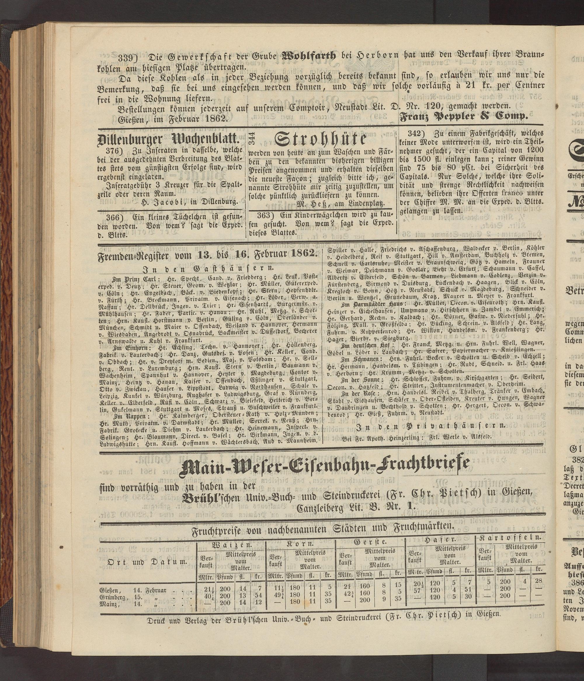 Gießen, im Februar 1862. Franz Peppler « Comp.