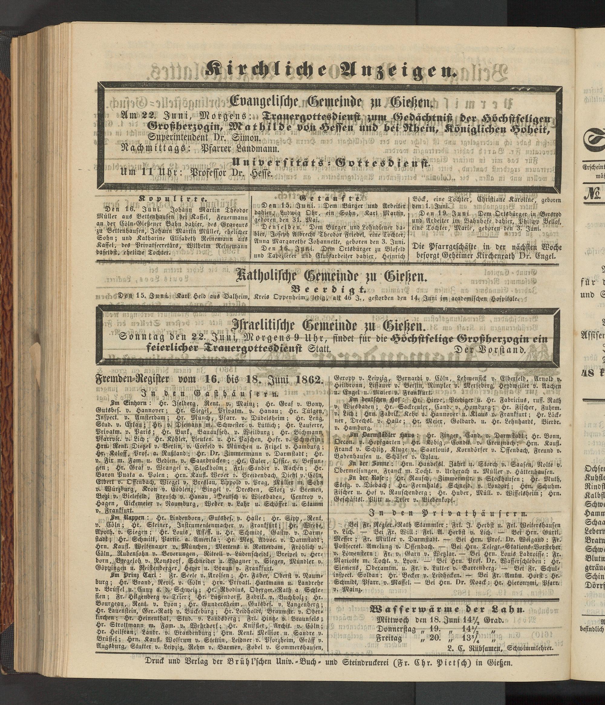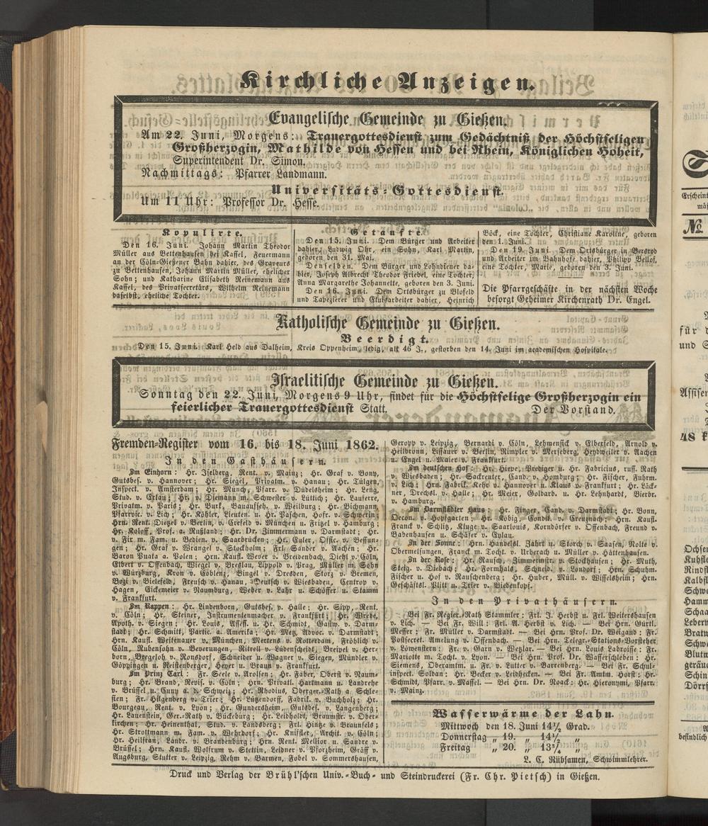 Sonntag den 22. Juni, Morgens 9 Uhr, findet für dieHöchssseligeGroßherzogin ein feierlicher Trauergottesdienst Statt. Der Vorstand.
