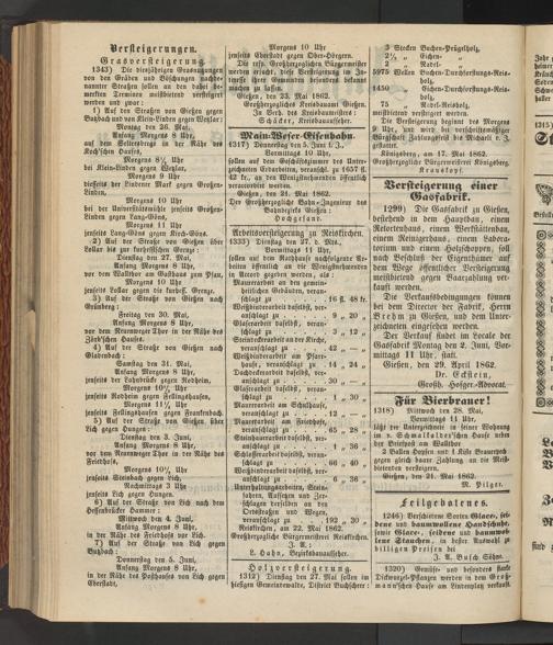 Gießen, den 23. Mai 1862. Großherzogliches Kreisbauamt Gießen.