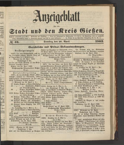 Großen-Linden, den 19. April 1862.