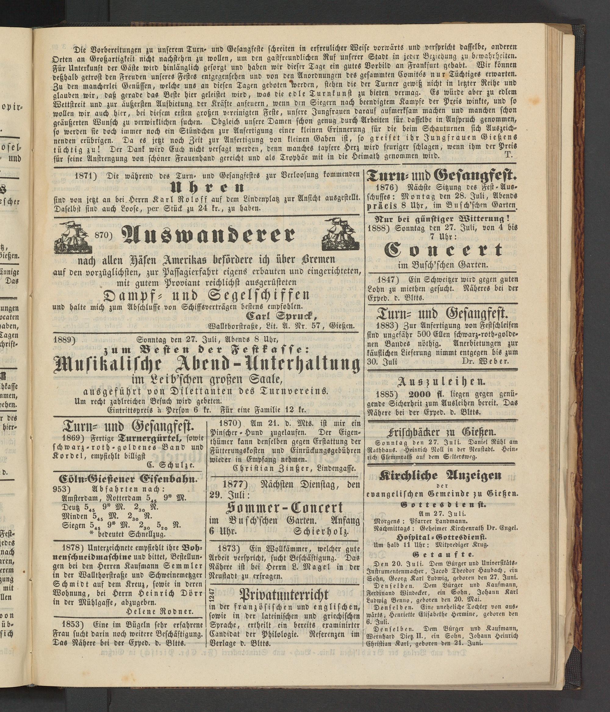 1889) Sonntag den 27. Juli, Abenvs 8 Uhr,