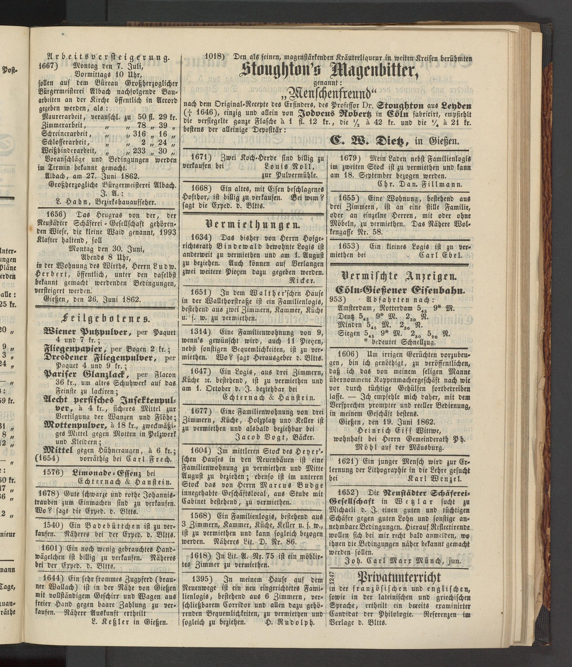 Gießen, den 19. Juni 1862.
