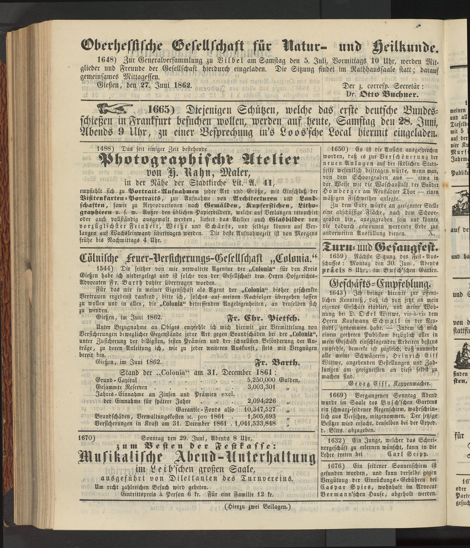 Gießen, im Juni 1862. Fr. Chr. Pietsch.